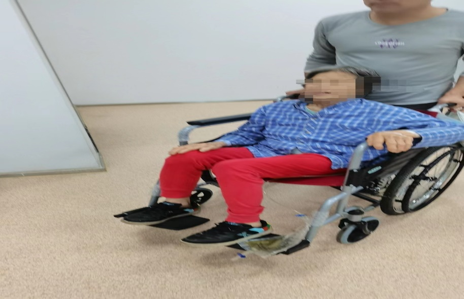 患者第一天来我科做治疗,双下肢无力,无法站立,家属推轮椅进舱。