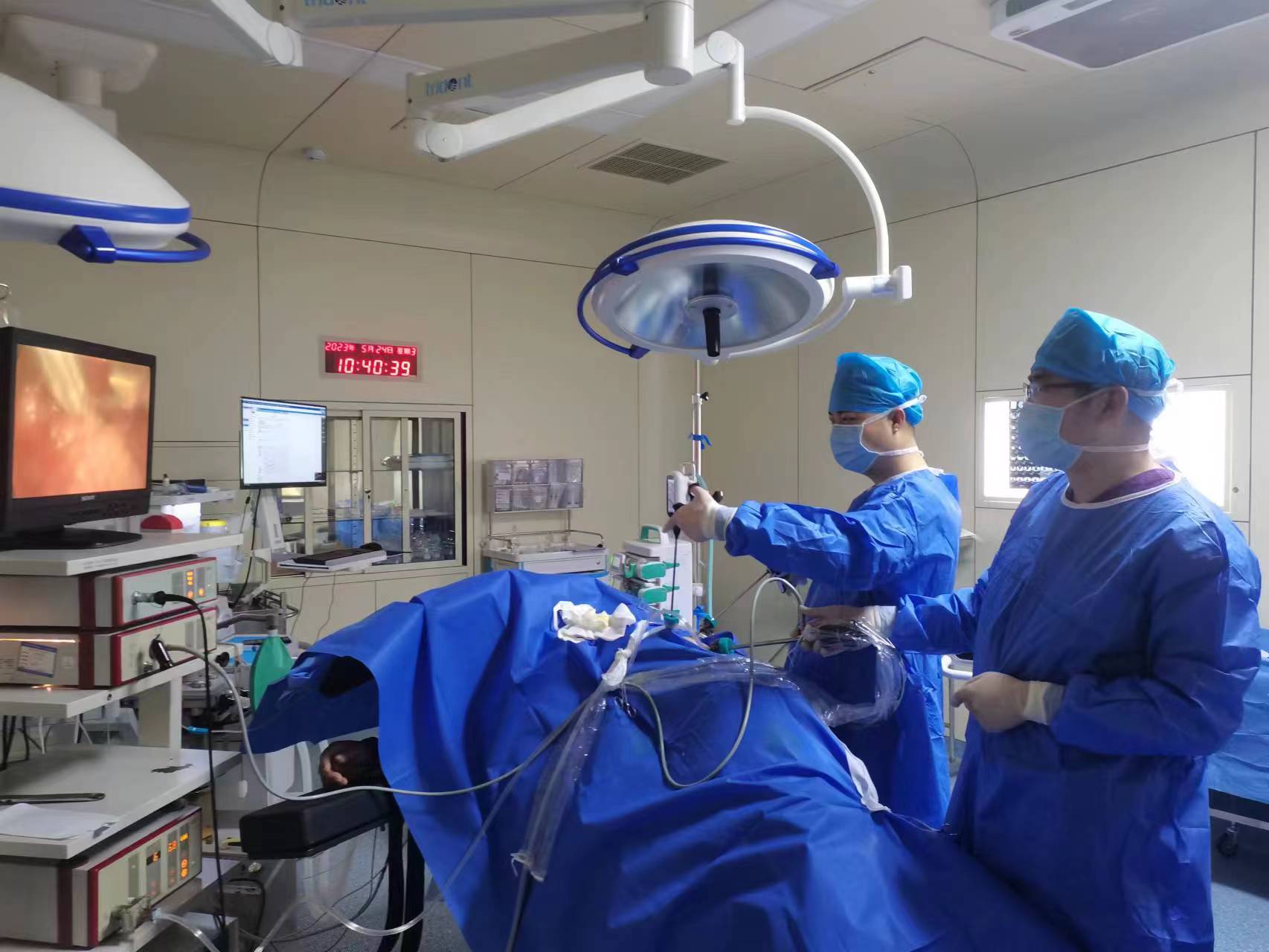 刘传喜医师,支永成主治医师一起完成腹腔镜下肾囊肿去顶术1