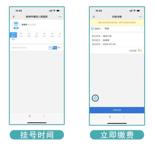 点击【>】进入结算页面,确认信息无误,点击【立即付款】,预约挂号成功。