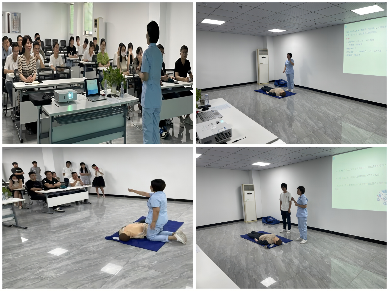 培训以急救知识和技能培训为主,采用理论与实际操作相结合的方式,体检中心刘霞主任强调了人人学急救,人人会急救的重要性,并重点针对企业生产生活中常见疾病的预防、可能遇到的紧急突发事件开展培训,内容包括心肺复苏、海姆立克等紧急处置方法。