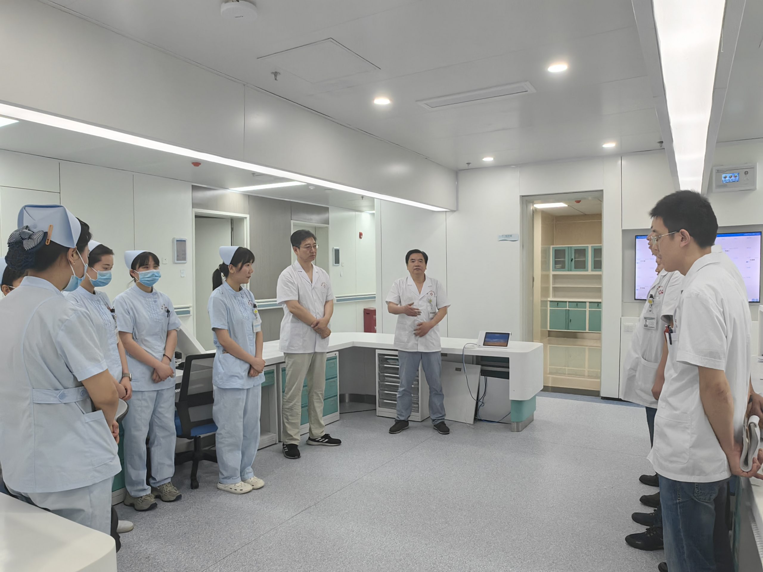 经过紧张筹备,蚌埠市康复医院(市四院)骨科病区住院患者搬迁转运工作顺利完成。7月12日,我院骨科进行首日晨会交班,开始正式运行,院党总支书记翟红兵、副院长李叶刚参加晨会早交班,对病区房间、护士站、治疗区、抢救室、医疗区等设备运行、耗材物资准备、医疗护理信息系统是否通畅等,以及住院患者详细情况进行查看。