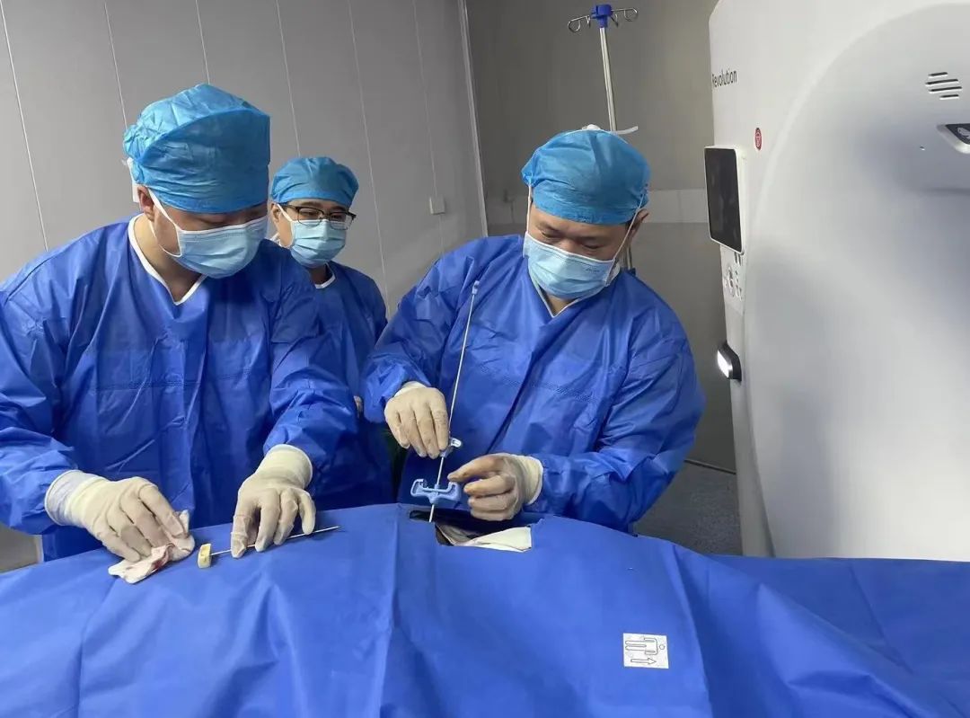 近日,我院骨科团队在CT引导下成功完成一例高位胸椎(TI)转移瘤骨水泥填充成形术。高位胸椎椎体成形手术定位难、手术操作难度和风险较大。在CT定位引导下,可以准确定位肿瘤病灶,设计精确穿刺路线,对肿瘤病灶精准治疗提供了保障。
