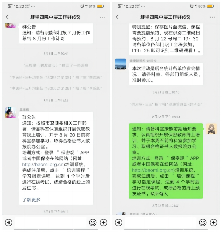 为切实开展好保密教育线上培训活动,院办公室迅速动员,在微信工作群多次发布培训方式、培训要求等内容,组织职工积极参与中央保密办(国家保密局)依托“保密观”APP和中国保密在线网站开设的线上培训。