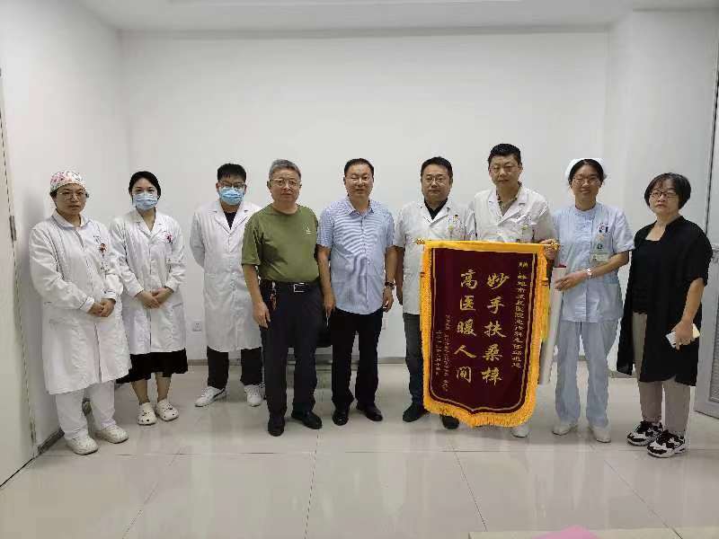近日,我院急诊科上演了温馨感人的一幕,患者李大爷的家属亲手将印有“妙手扶桑梓 高医暖人间”的锦旗和一封感谢信送到急诊科邱祖建(主任)医护团队的手中,真挚地感谢急诊科医护人员的精湛医术以及贴心服务。