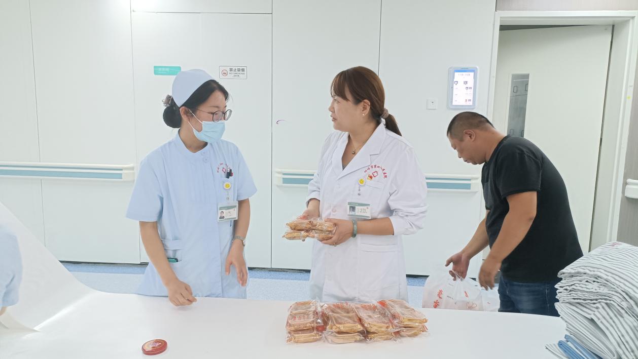 每到一处,张倩茹书记都热情地与科室工作人员交谈,详细询问科室情况、病人住院及就诊情况、医疗护理及后勤保障工作安排情况,并给大家发放月饼。她特别叮嘱临床一线医护人员两节期间要严把医疗质量关,为患者提供温馨优质的医疗服务。同时做好各项医疗保障工作以及随时应对各种突发事件的应急准备,全力保障群众过一个健康祥和的假期。