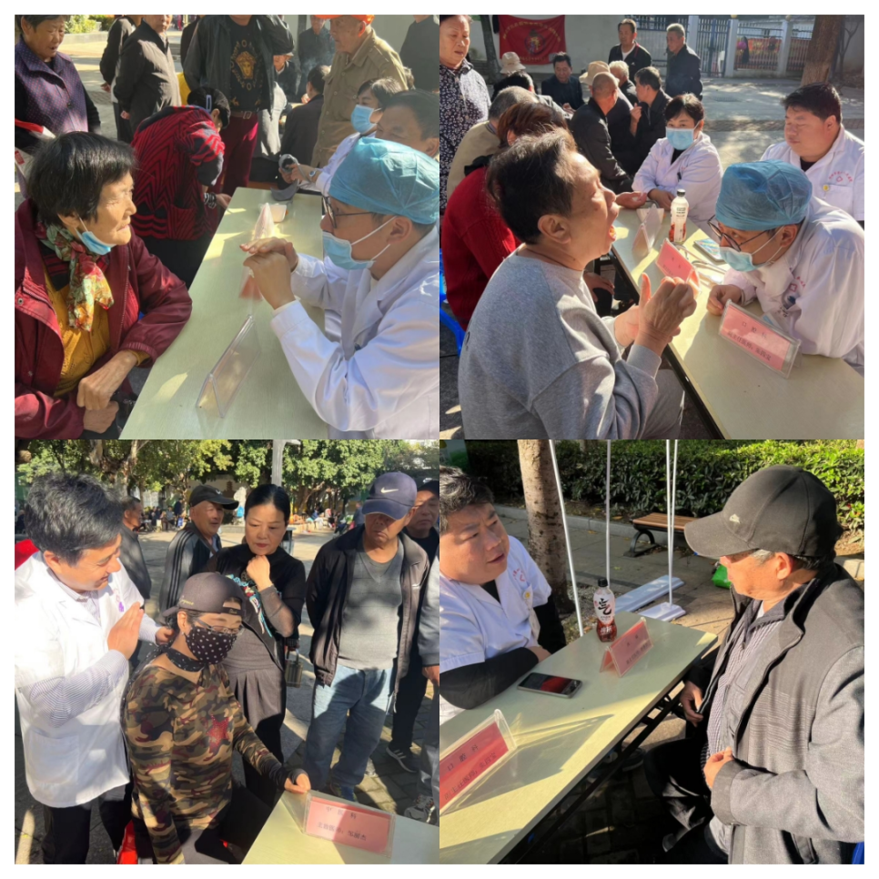 口腔科医生耐心询问前来咨询群众们的日常牙齿状况,帮助他们分析口腔问题,并提供了相关防护诊疗建议,指导大家保护牙齿、预防口腔疾病;内科医生细致耐心的给前来咨询的居民针对慢性支气管炎、高血压、糖尿病慢性病居民如何合理用药控制好高血压和高血糖等提出建议;中医科医生为居民进行现场号脉、推拿理疗,科普增强体质、预防疾病、颐养生命的医事活动;护士为居民测血压,并解答什么是高血压,高血压临床标准,什么时候测血压比较合适和高血压饮食常识,多吃谷物、蔬菜、含有优质蛋白食物,平时要做到低脂低盐,避免进食物内脏、脂肪等高热量的食物,同时要作息规律,避免熬夜等不良生活习惯。