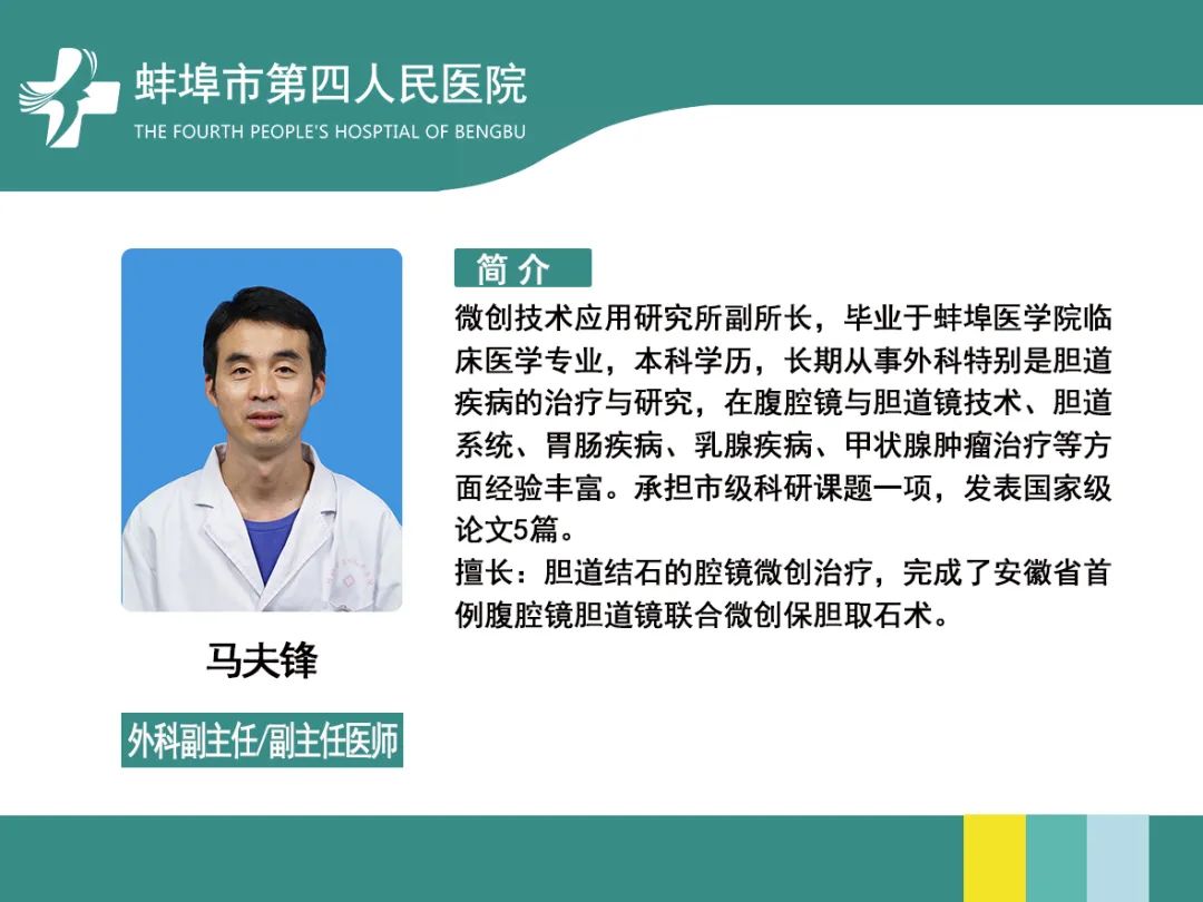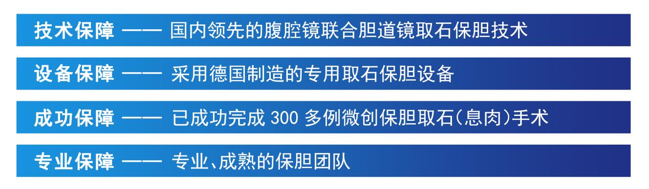 蚌埠四院微创外科诊疗中心自2016年11月6日在安徽省率先开展微创保胆取石(息肉)术。已经先后为来自安徽省各地的百余名保胆取石(息肉)患者解除了胆囊病痛,采用“微创保胆取石手术”方式,用微小的创伤取净胆囊内结石,既可以解除病痛,又保留了胆囊及其生理功能,避免患者出现“无胆”的副作用及胆囊切除后的各种危害。
