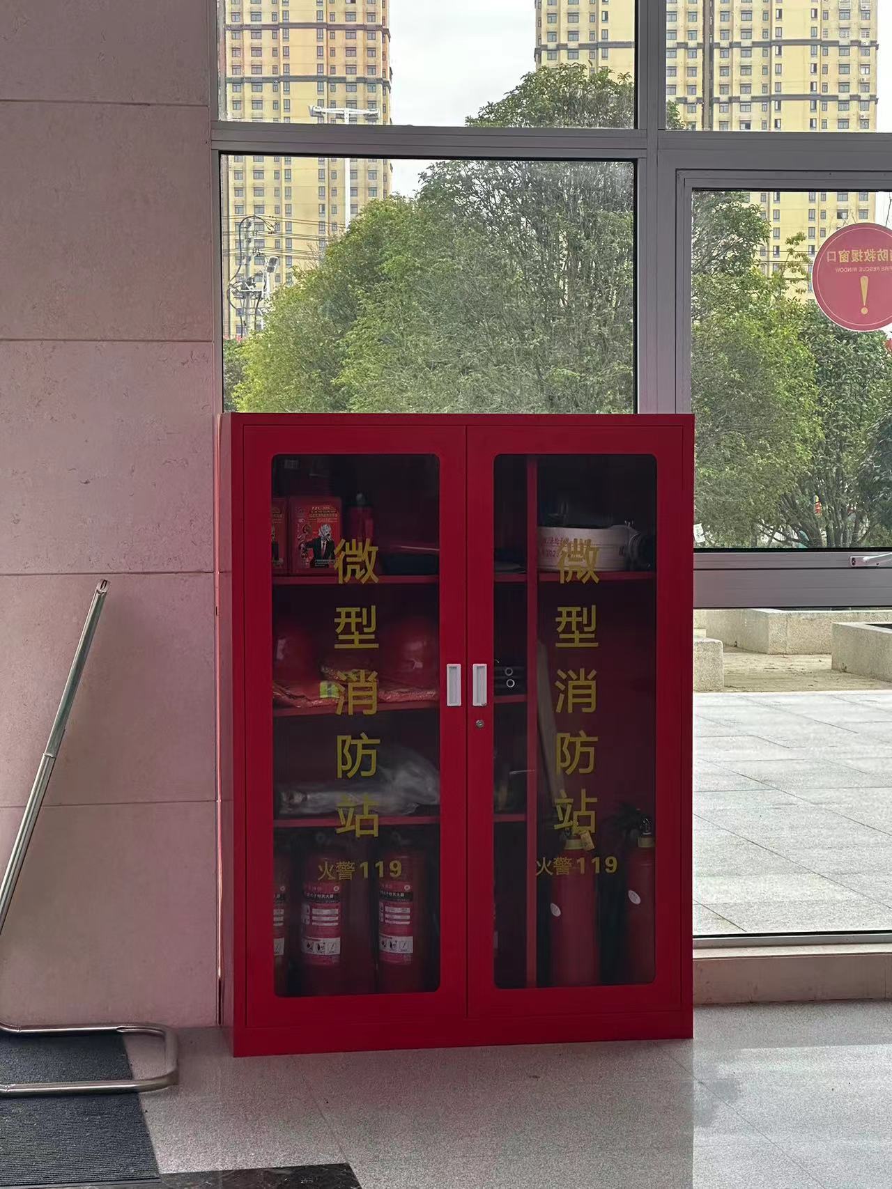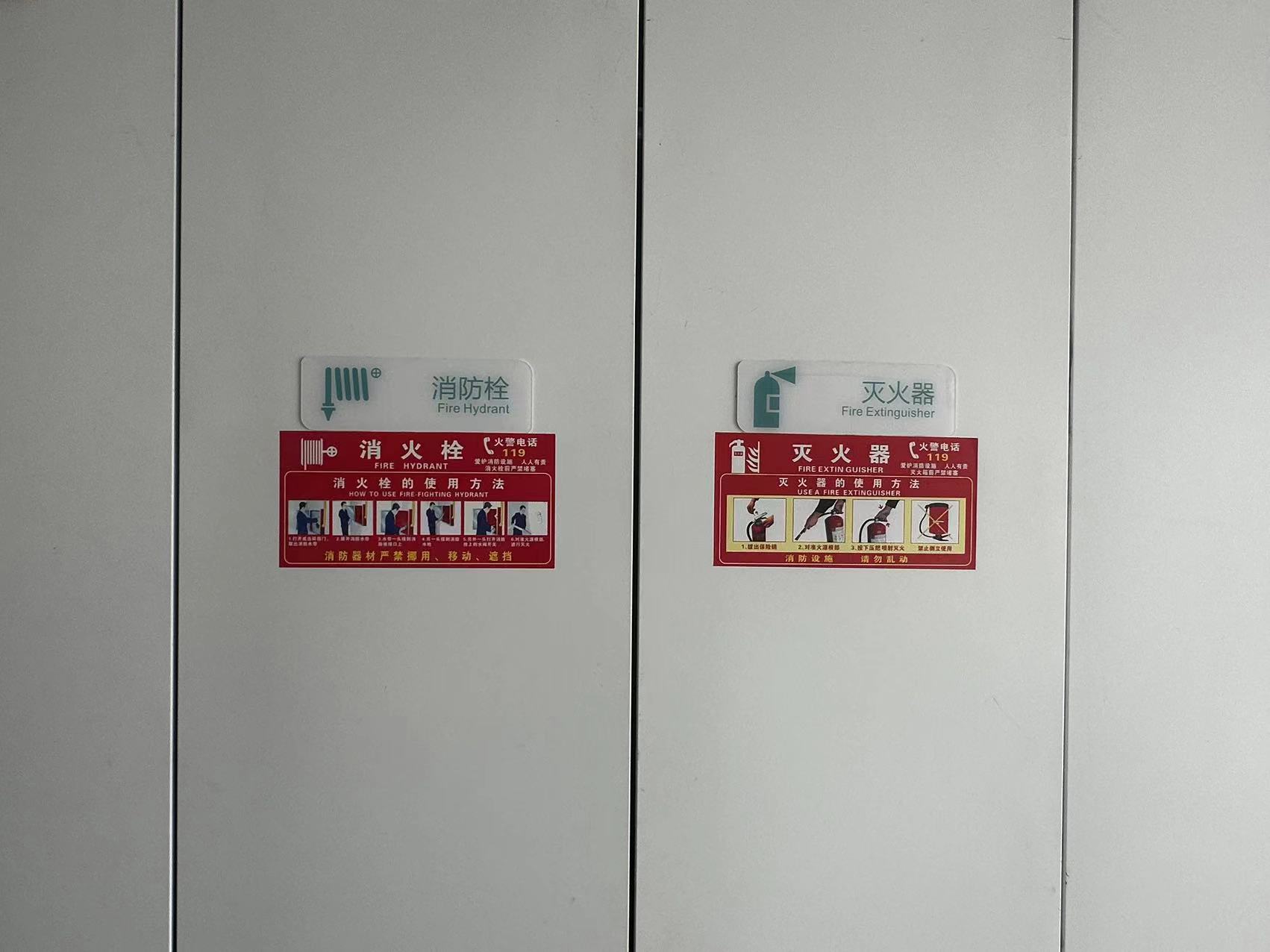 医院内部设置多个消防栓、灭火器存放点、微型消防站及告示使用方法