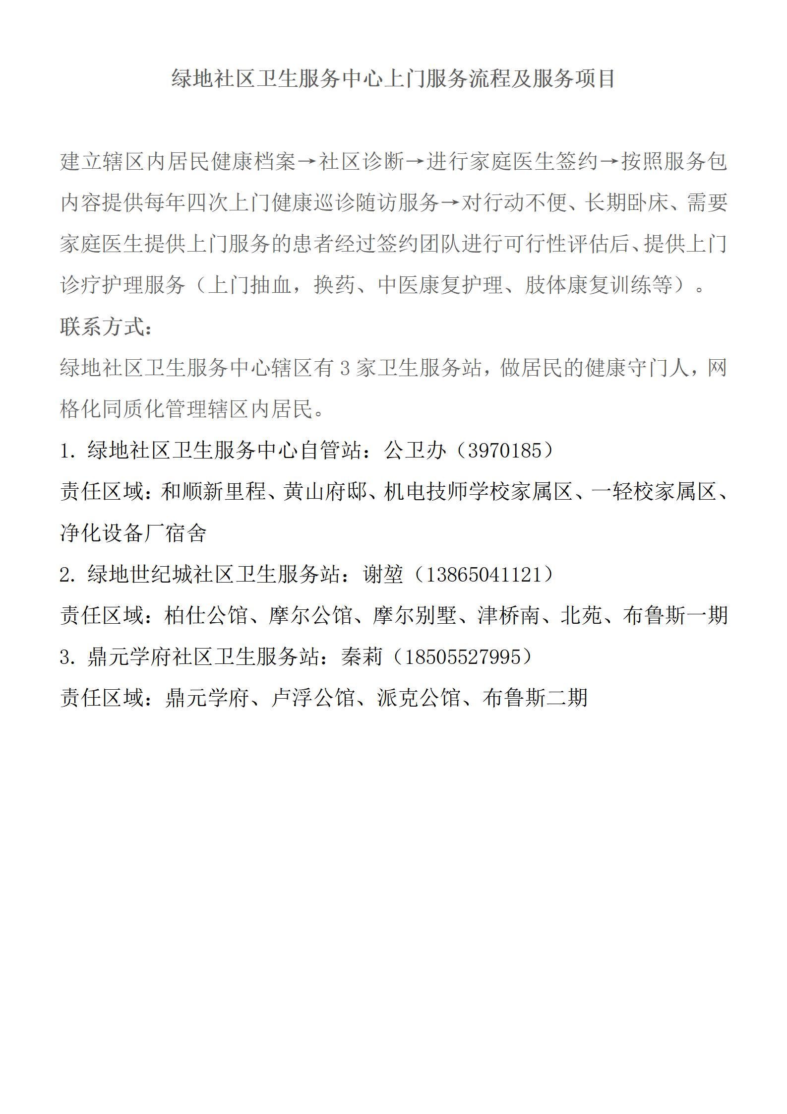 社区服务———上门服务项目等服务流程、内容、联系方式等
