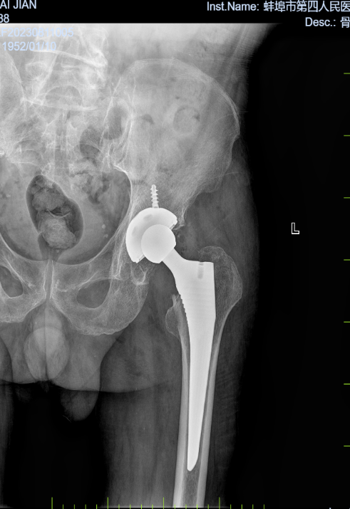 病例一:患者,男,71岁,因“左髋关节疼痛伴活动受限一周”入院。诊断:左侧股骨头无菌性坏死;行左侧全髋关节置换术,手术顺利,术后恢复良好,顺利出院。