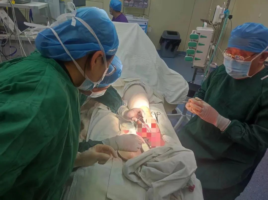 12月6日上午9时,蚌埠市第四人民医院(市康复医院)皮肤科(烧烫伤治疗专科)袁振奋主任医师团队为左下肢2%深二度烫伤患者在腰椎硬膜外麻醉下,行左侧小腿削痂植皮术+大腿取皮术,手术过程顺利。