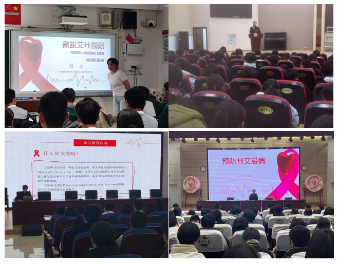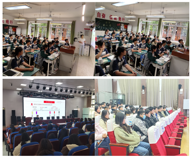 为有效积极推动学校健康教育工作,向青少年普及艾滋病防治知识,增强青少年防治艾滋病的能力和意识,促进学生身心健康成长,近期,蚌埠市第四人民医院(市康复医院)体检中心应邀走进蚌埠田家炳中学教育集团、蚌埠第四中学、蚌埠工艺美术学校、蚌埠第一中学、为学生开展了“携手防疫抗艾 共担健康责任”的艾滋病知识宣传讲座。