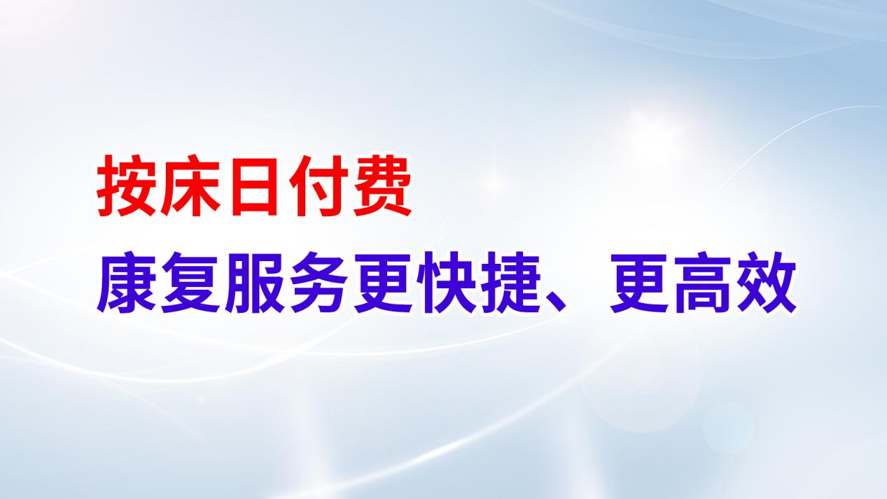 按床日付费指的是符合要求的病种,医保基金可以按照床位数按日结算,意在让更多需要康复治疗的患者享受更便捷、高效的医疗服务。凡是脑梗死、脑出血、颅脑外伤、脊柱脊髓损伤、中枢系统感染、四肢长骨骨折术后、关节置换术后的患者在发病后的120天内,均可以我院进行连续的系统康复治疗。