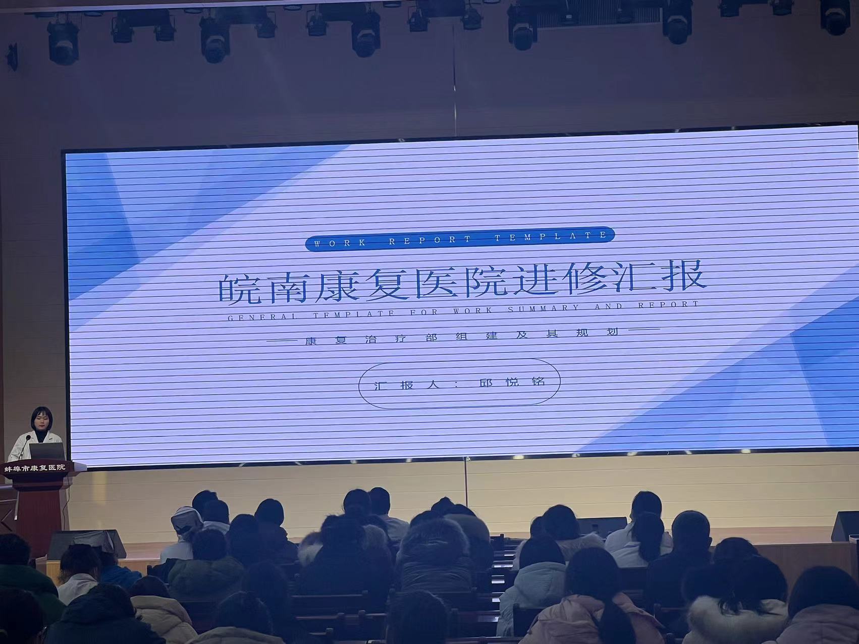 分享会上,来自在皖南康复医院进修学习的老年医学科,中医科,康复治疗部的4名医护人员进行了汇报交流。他们通过PPT的形式,图文并茂,紧扣专业特点及学习方向,重点就进修学习期间学到的康复学科新知识、新理念、新模式、新技术和所在进修单位在学科建设、科室管理方面好的经验和做法进行汇报,并围绕当前工作开展所面临的核心问题和下一步工作计划与大家进行了热烈的交流,充分展现了外出学习取得的丰硕成果。