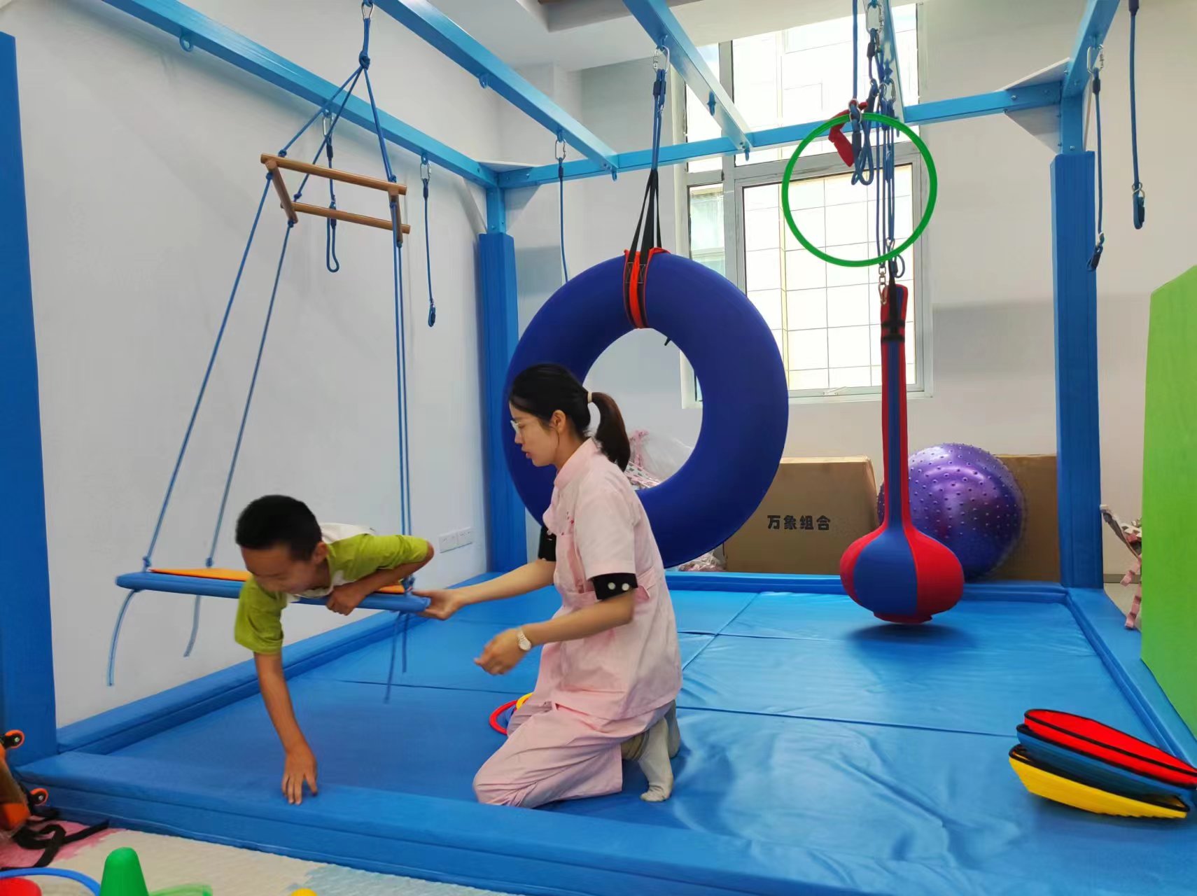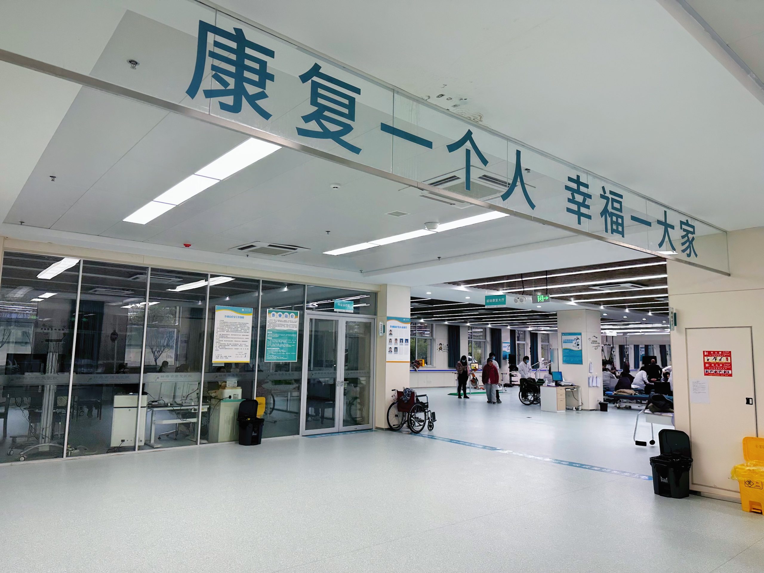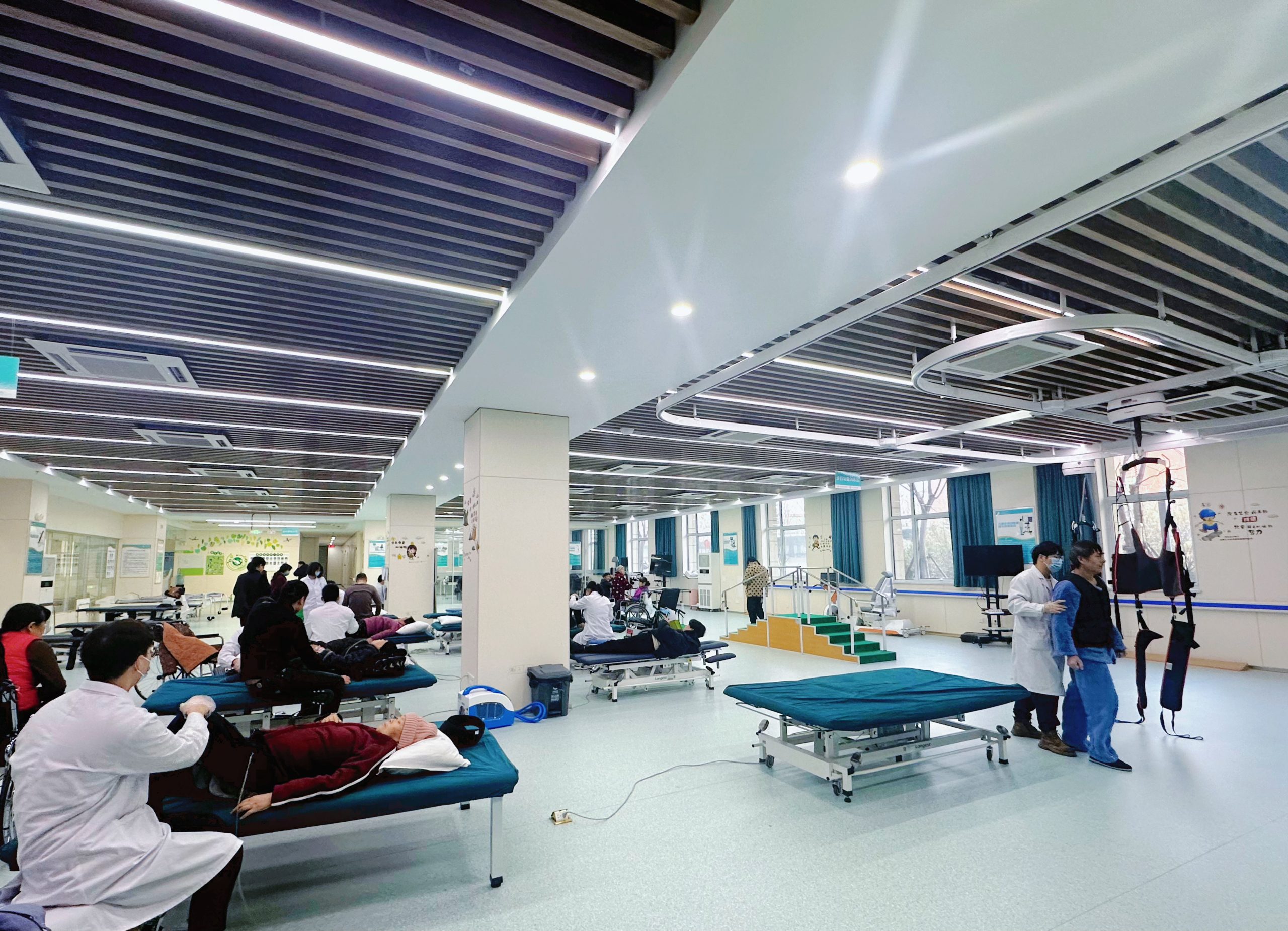康复治疗大厅环境优雅,设施一流、功能齐全,是融传统康复和现代康复于一体的公共治疗平台。总诊疗区域面积达2000余㎡。康复治疗大厅目前已开设11大治疗科室,有各专业高、中、初级职称的康复治疗师32人。业务涵盖:PT(运动治疗)、OT(作业治疗)、心理言语治疗、针灸治疗、推拿治疗、机器人、物理因子治疗、康复辅具适配等。