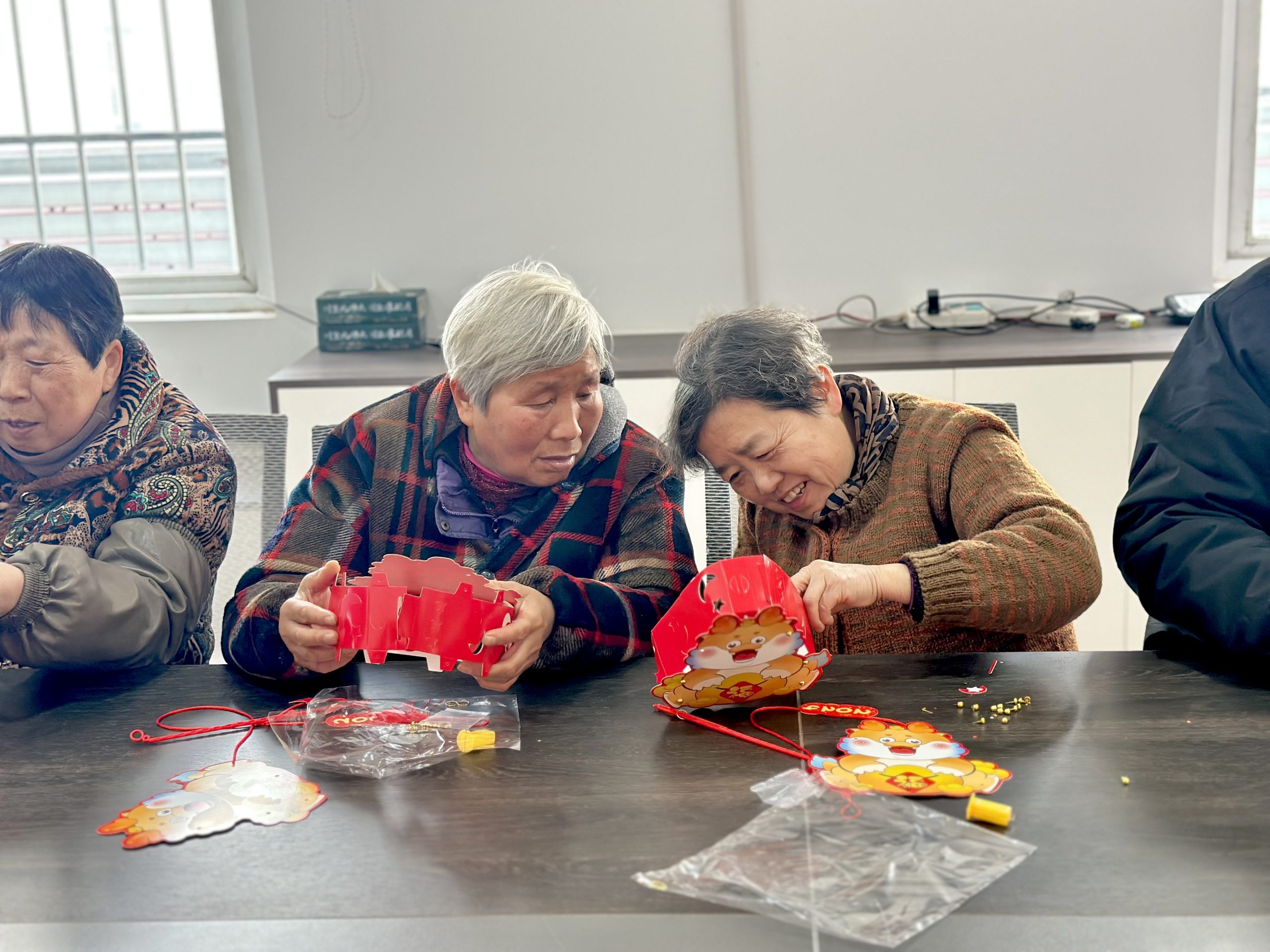 活动现场,志愿者徐香先向居民们介绍了元宵花灯的历史渊源和制作技巧。随后,在志愿者的指导下,居民们将绘有各种图案的纸卡粘贴拼接,一盏精美的花灯就诞生了。喜庆十足的龙头花灯不仅蕴含着居民们对美好生活的向往和祝福,也让大家感受到传统文化的独特魅力。