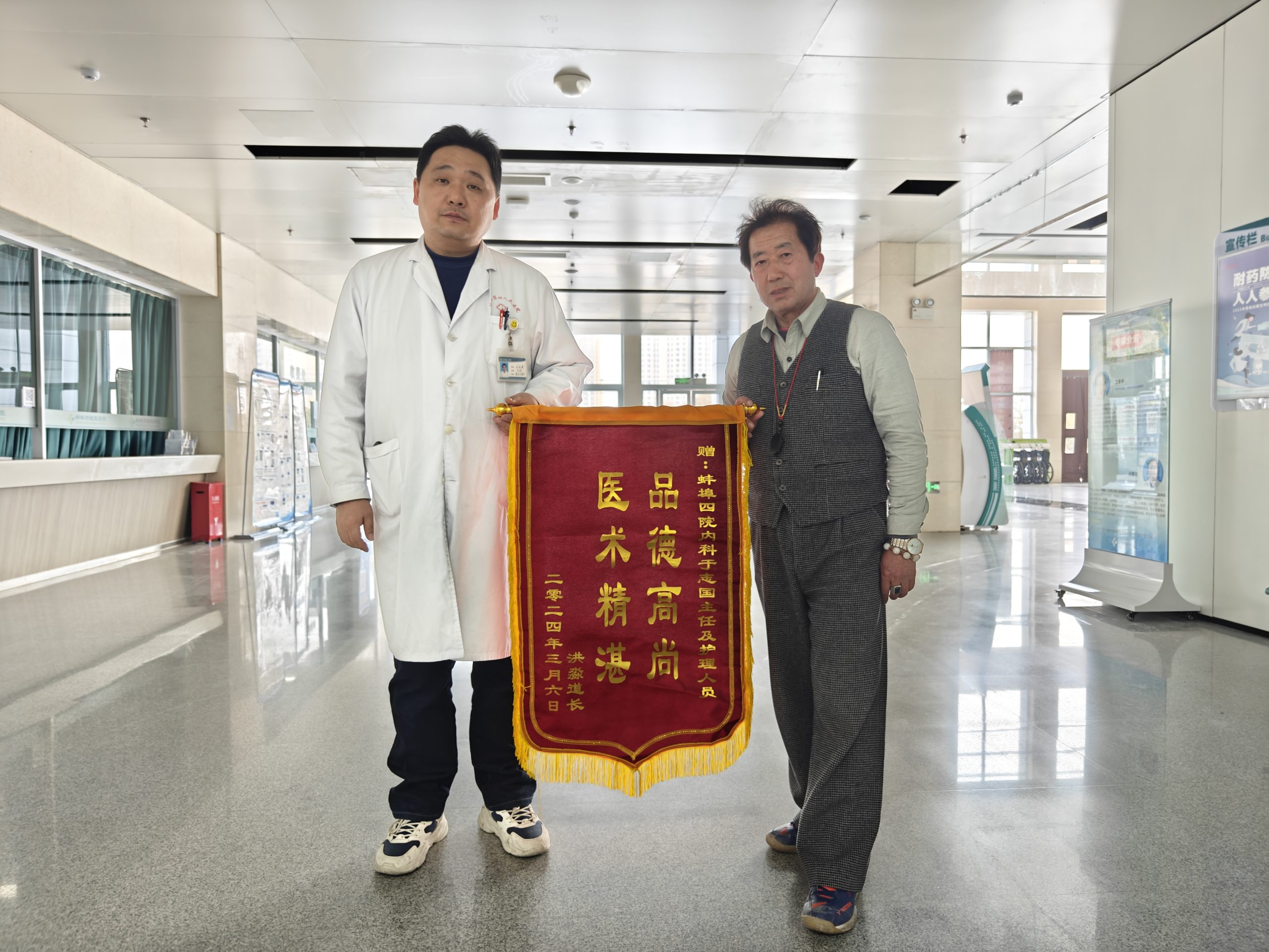 近日,蚌埠市第四人民医院(市康复医院)康复治疗部和神经康复科收到了份特别的春季礼物——两面锦旗。这锦旗由患者叶志国先生赠送,表达了他对我院医康人员深深的感激之情。