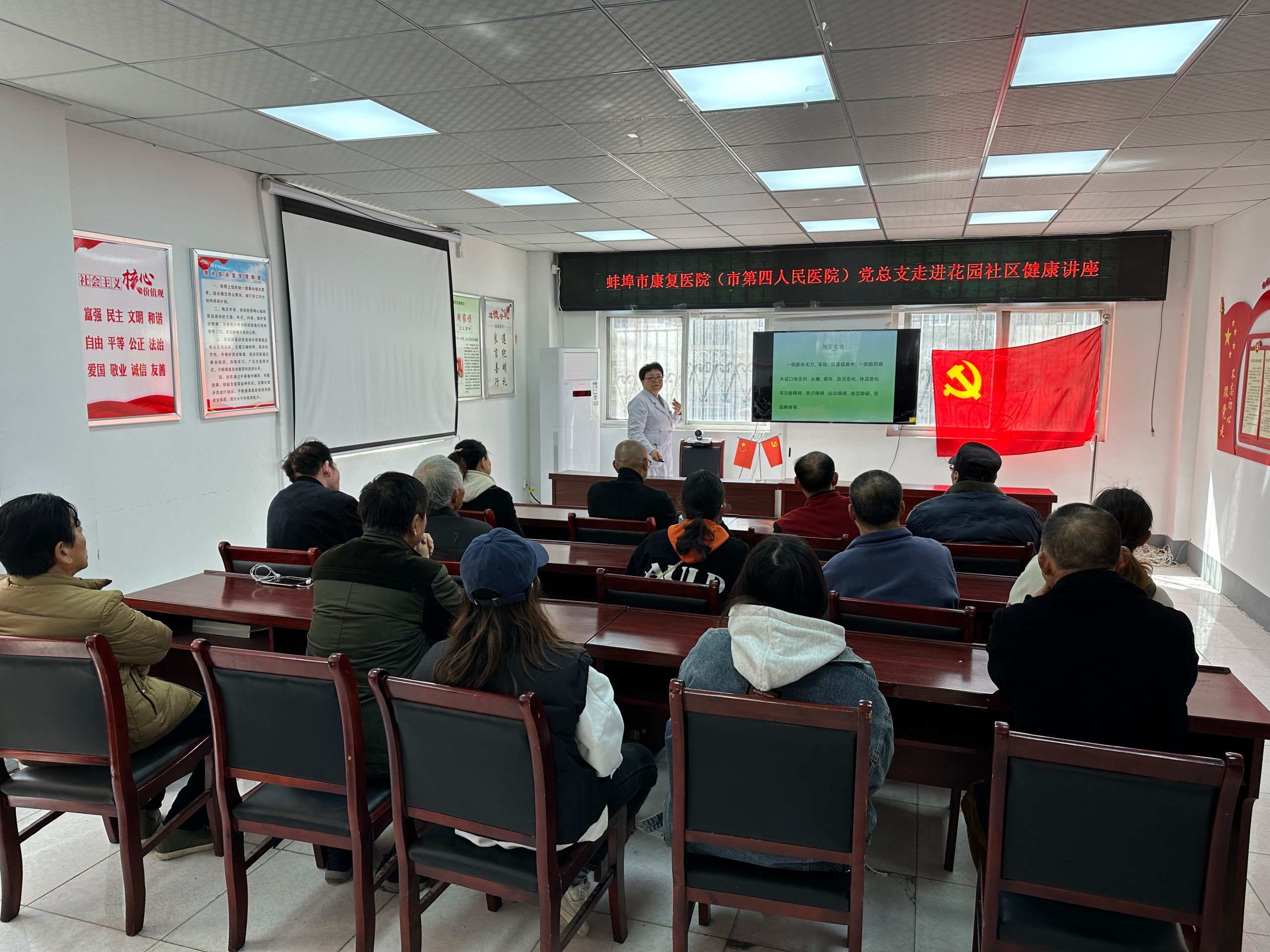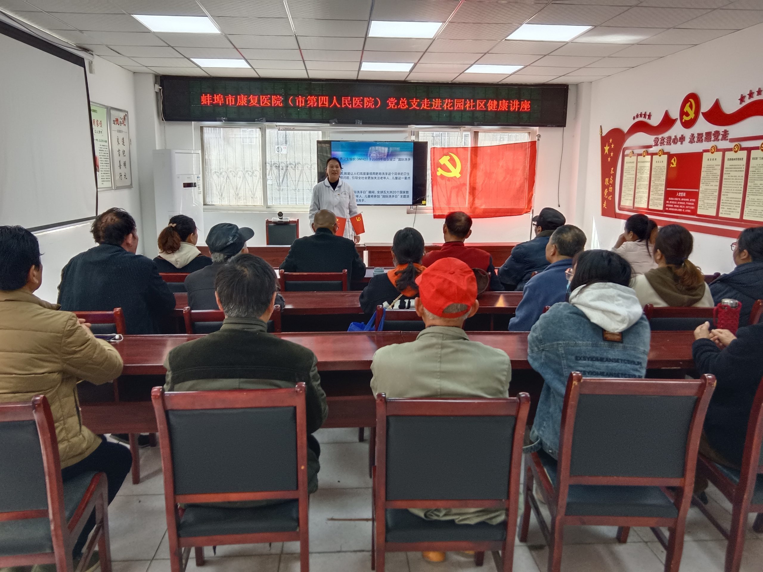 健康普及,党员在行动。3月21日,蚌埠市第四人民医院(市康复医院)党总支组织动员党员干部走进张公山花园社区,举办健康讲座活动,并提供义诊服务。活动旨在提高居民的健康意识,倡导健康的生活方式。