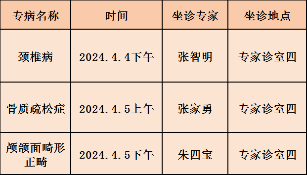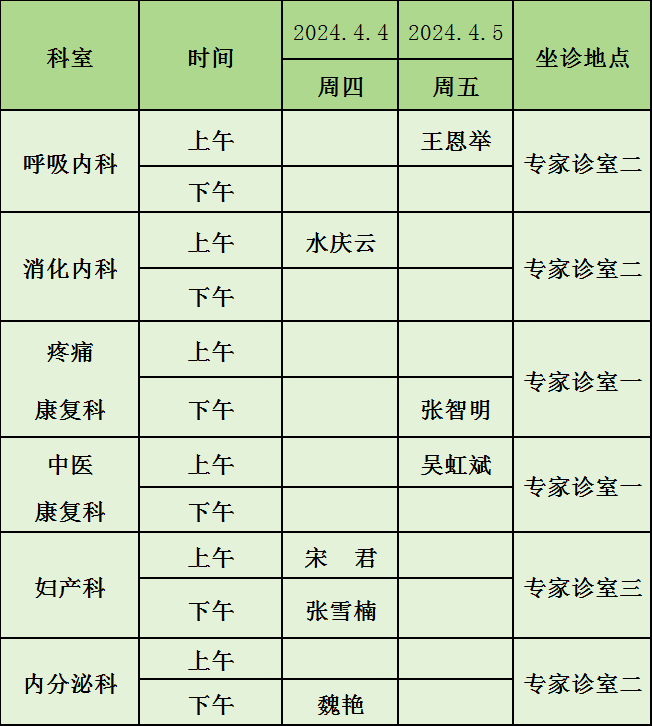 蚌埠市第四人民医院(市康复医院)张公山院区专家门诊清明期间排班表