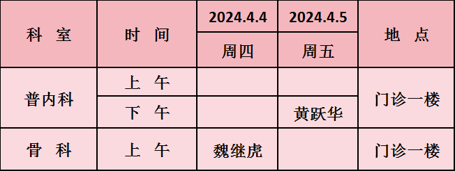 蚌埠市第四人民医院(市康复医院)康复院区专病门诊清明假期排班表