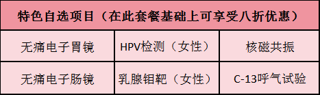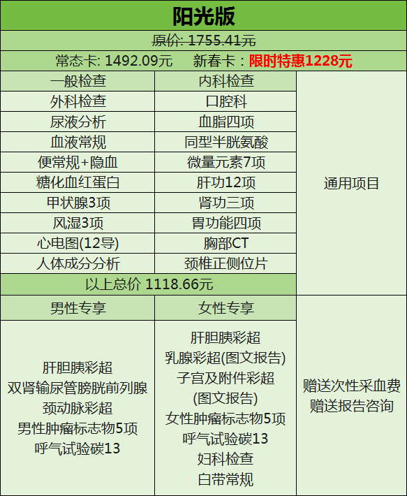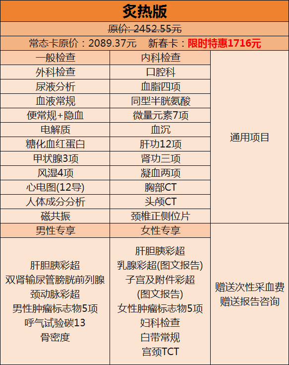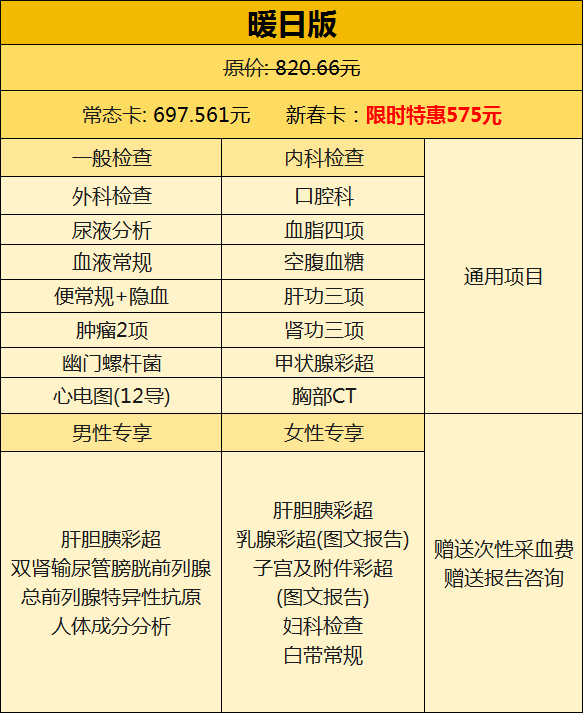 暖日版、阳光版、炙热版体检套餐(男、女)。