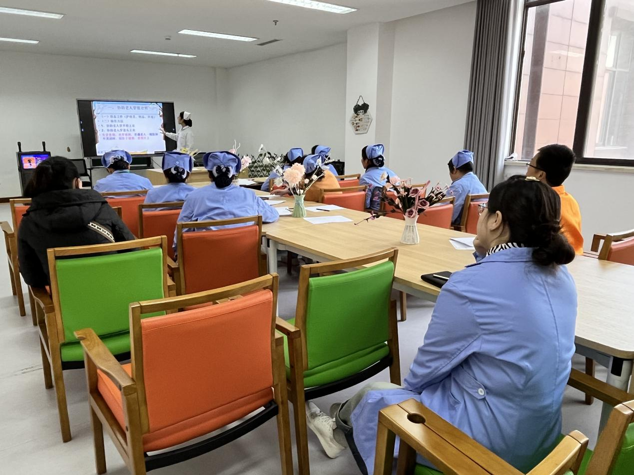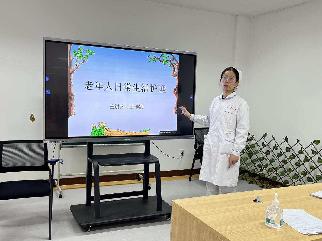 此次培训活动由我院老年康复科的护士王诗颖主讲。她以ppt课件为辅助,深入浅出地讲解了老年人日常生活护理的要点和技巧,包括协助老人穿脱衣物、卫生清洁、饮食辅助等多个方面。此外,她还针对长期卧床或轮椅使用者常见的压疮问题进行了详细的讲解和演示,使护理员们能够熟练掌握预防和处理的技巧。