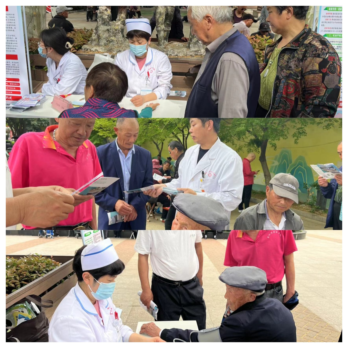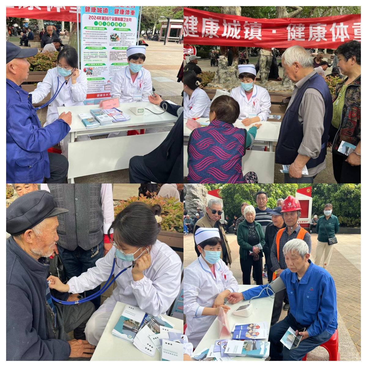 2024年4月15日下午,我院在蚌埠市东海游园组织了一场别开生面的爱国卫生日活动。内科、护理部的3名志愿者踊跃参与,他们不仅通过横幅、门展的形式广泛宣传健康知识,也为前来参加活动的居民提供现场血压测量和健康知识指导。