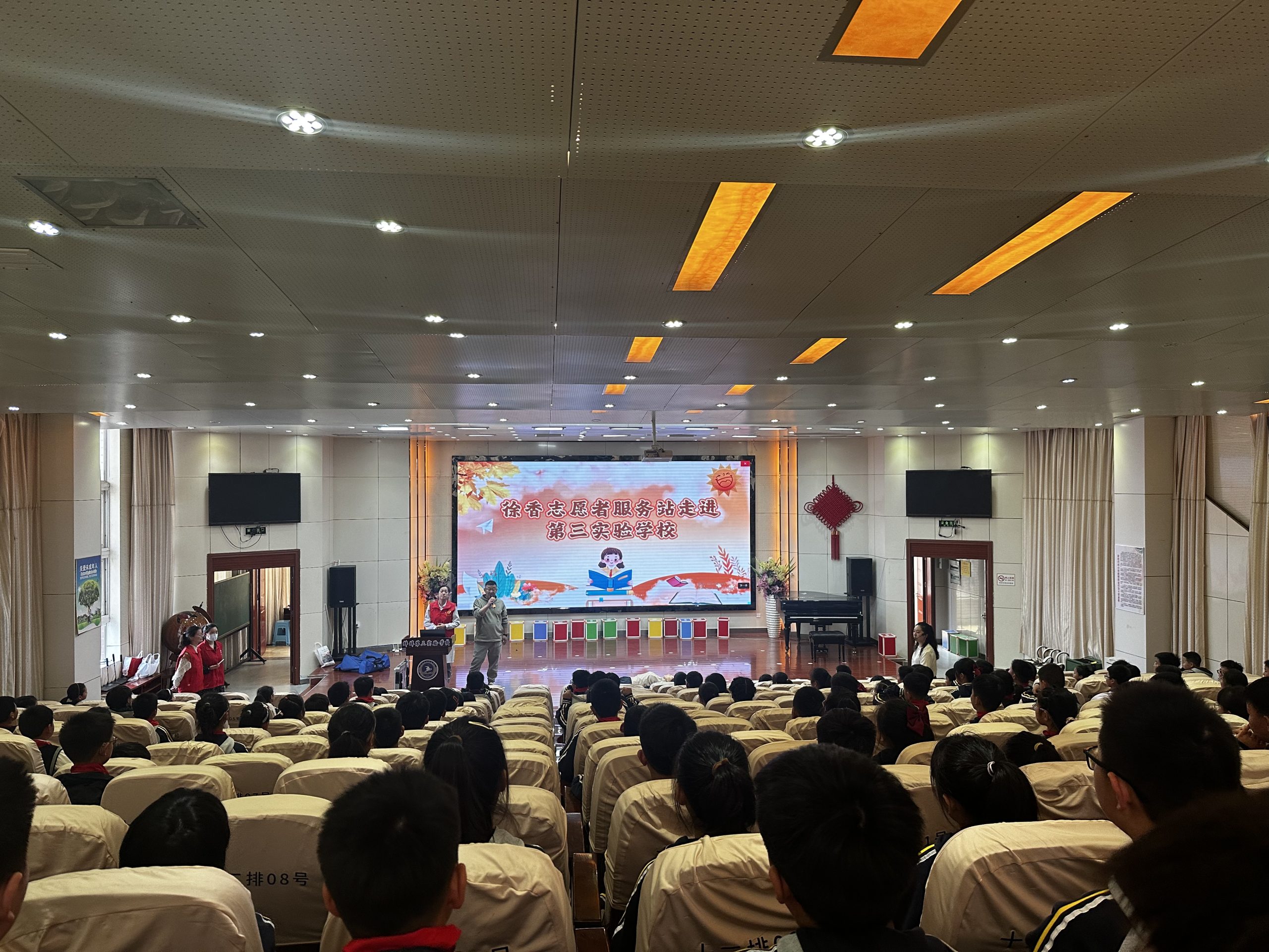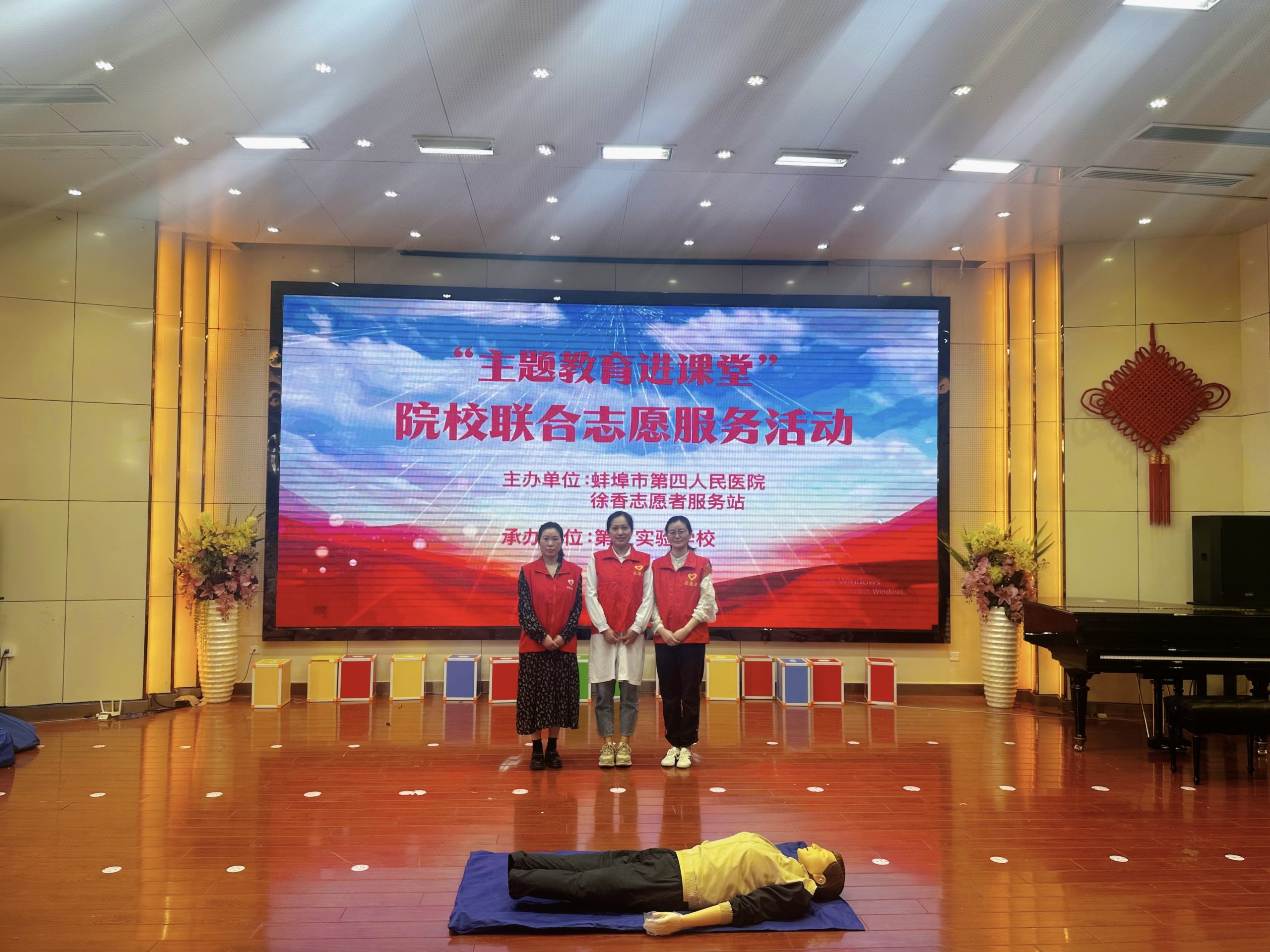 4月22日下午,蚌埠第四人民医院(市康复医院)徐香志愿者服务站的志愿者徐香、冯雪洁、袁媛、高雪为蚌埠第三实验学校在校师生带来一场以“主题教育进课堂 院校联合志愿服务活动”为主题的急救知识盛宴。