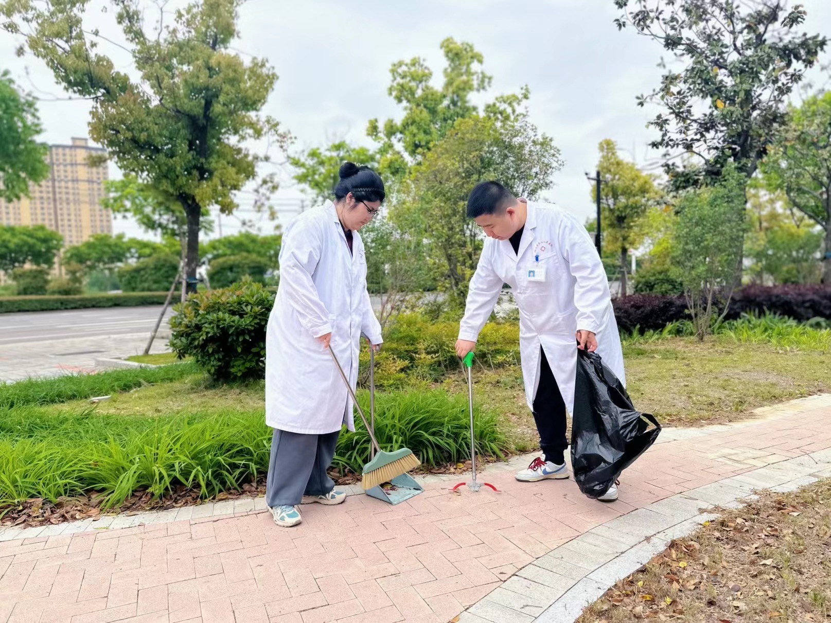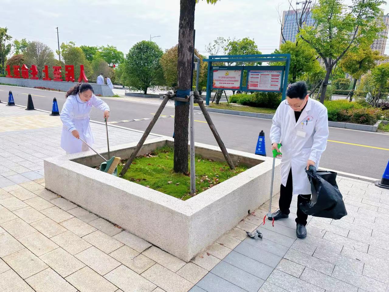 上午10点,团员、党员早早地来到了集合地点。他们手持清扫工具,精神饱满地投入到扫除工作中。在明确分工后,有人专心清理花坛中积攒的落叶和杂物,有人则负责清扫草地上的各类废弃物。大家紧密合作,为了“改善医院环境”这一共同目标而倾力付出,深刻体现了四院党员、团员间的团结协作与实干精神。