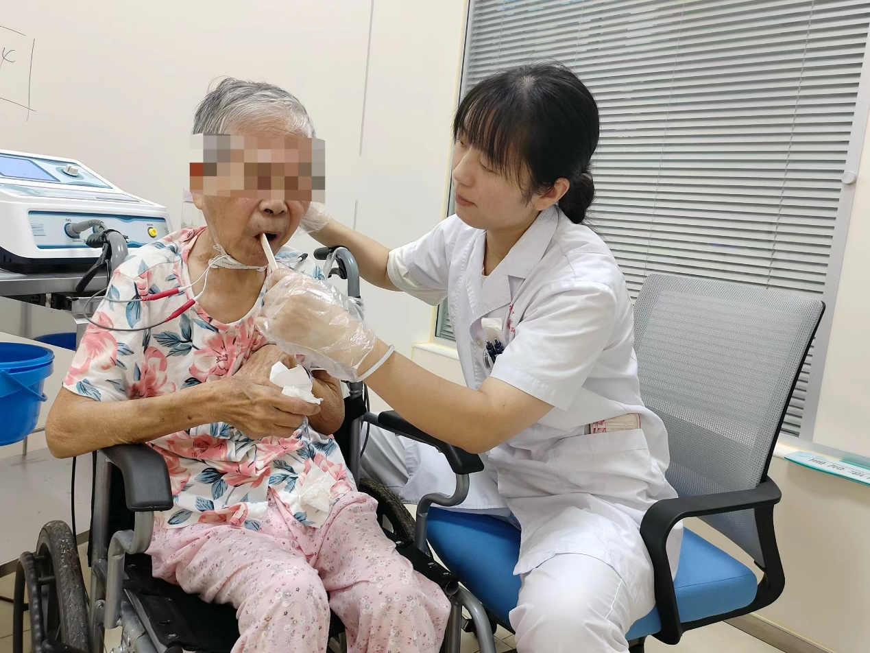 其中一位患者徐阿姨对朱子君说:“朱老师,我自从生病之后就没吃过饭,我现在最大的愿望就是去掉胃管,可以用嘴巴吃饭,然后再把气切管去掉!”之后,朱子君带领她所在的团队对徐阿姨进行了详细的基础评估、床旁吞咽筛查,临床吞咽功能评估。