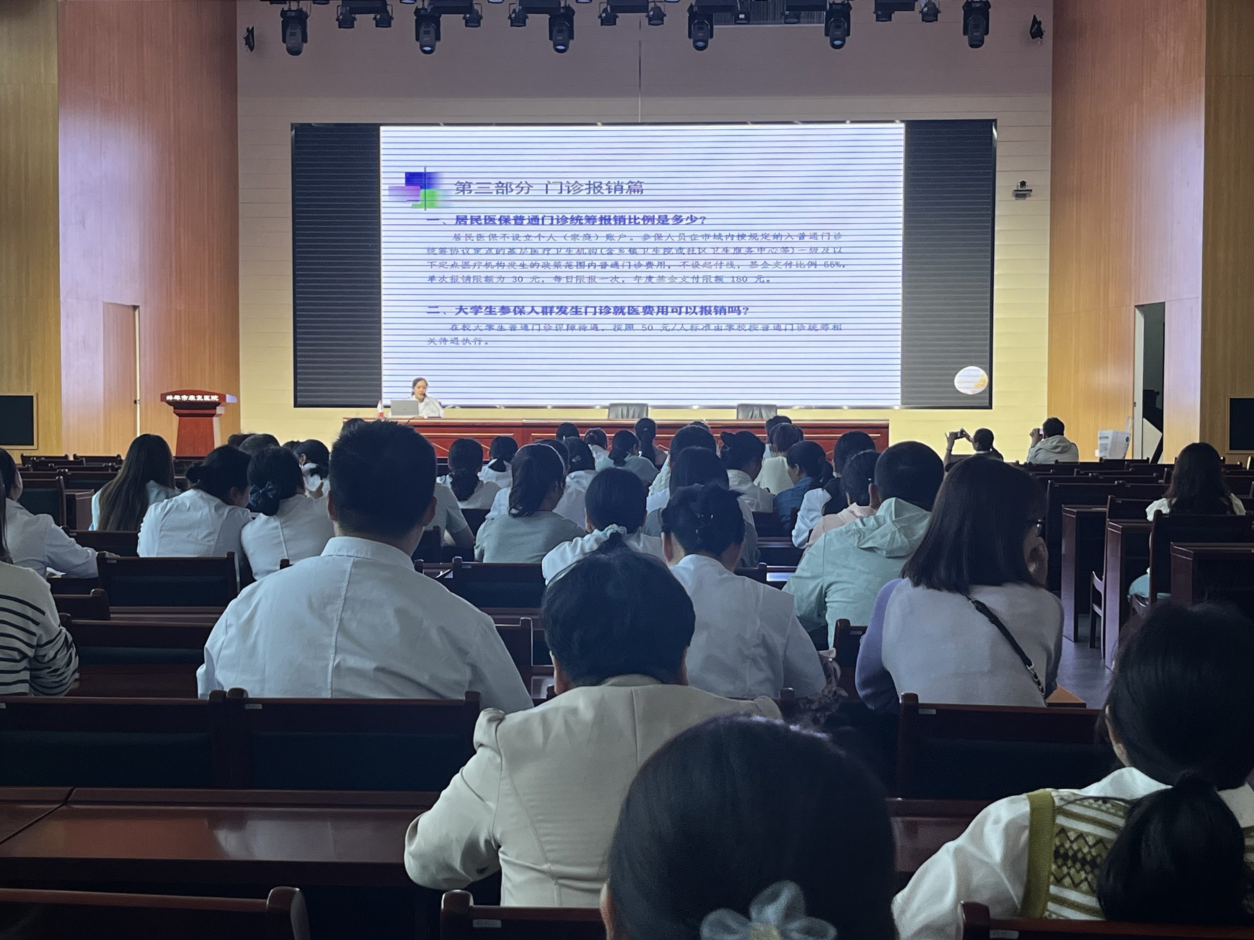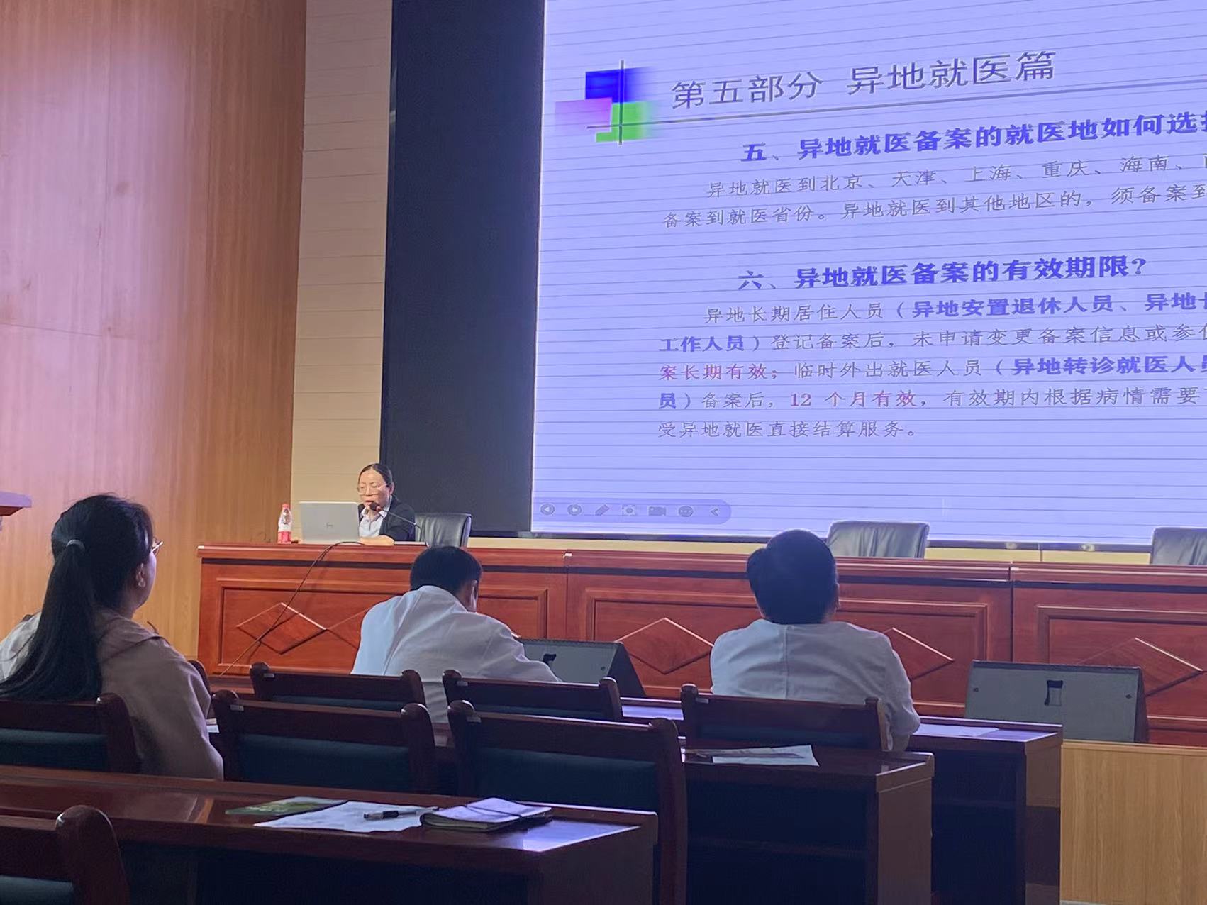 讲座中,唐春柳科长讲述的内容涵盖最新的医疗保险政策、门诊、住院和异地就医报销政策,内容详实,深入浅出,为窗口及门诊解决了诸多实际操作问题,得到了参加培训人员的高度评价。