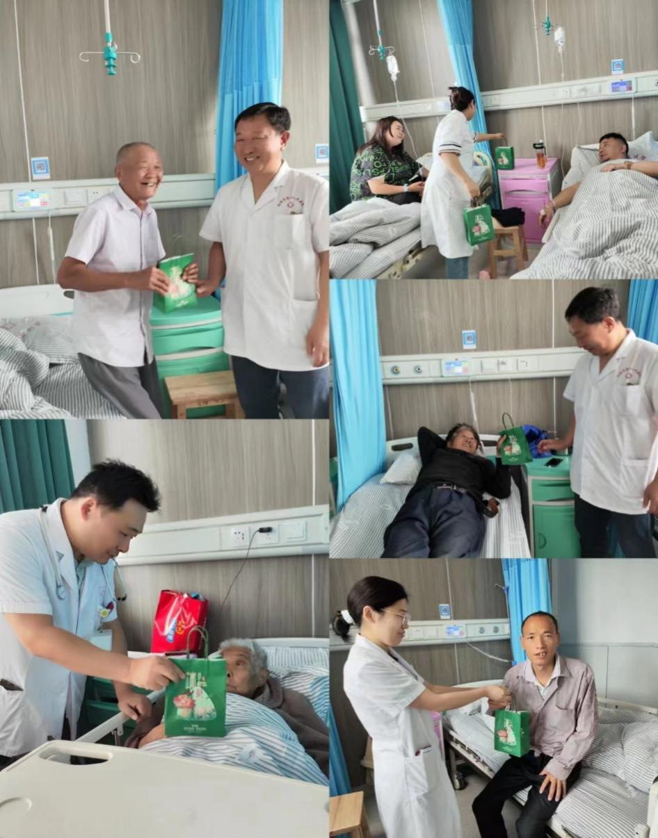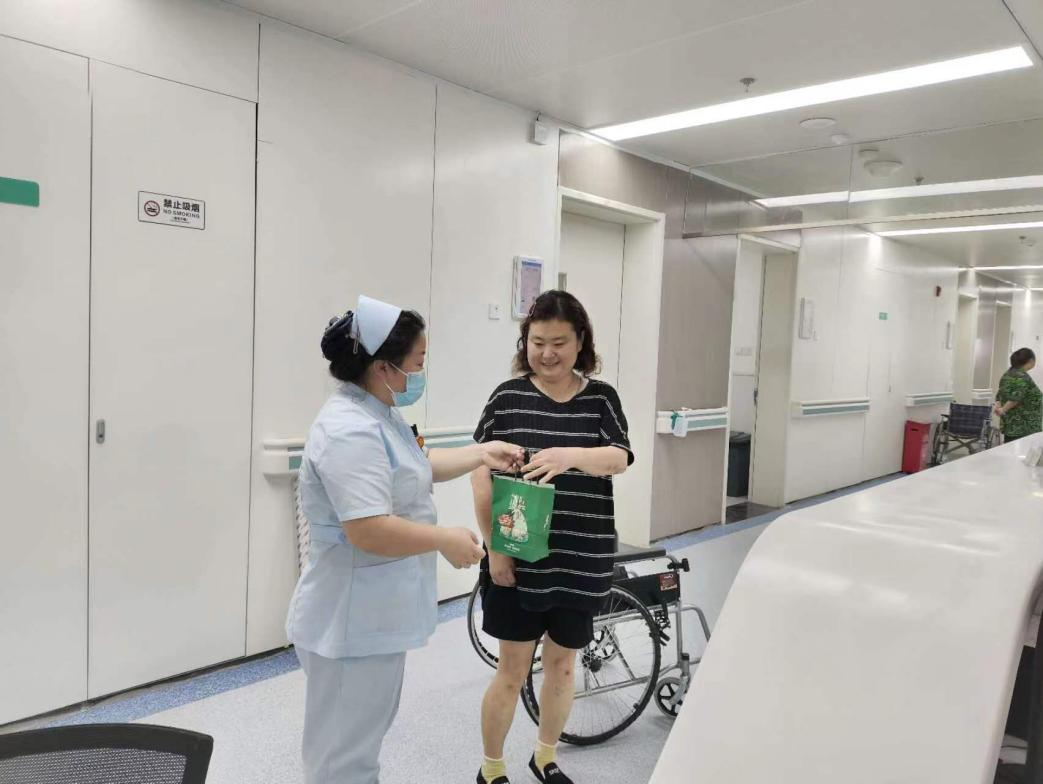 6月6日上午,内三(心脑血管康复)科的医护人员手持粽子小礼包,面带微笑走进病房,将这份满载关怀与祝福的礼物亲手送到每一位患者手中。他们不仅为患者送上了节日礼物与问候,更传递了医护人员对患者深深的关爱与祝福。