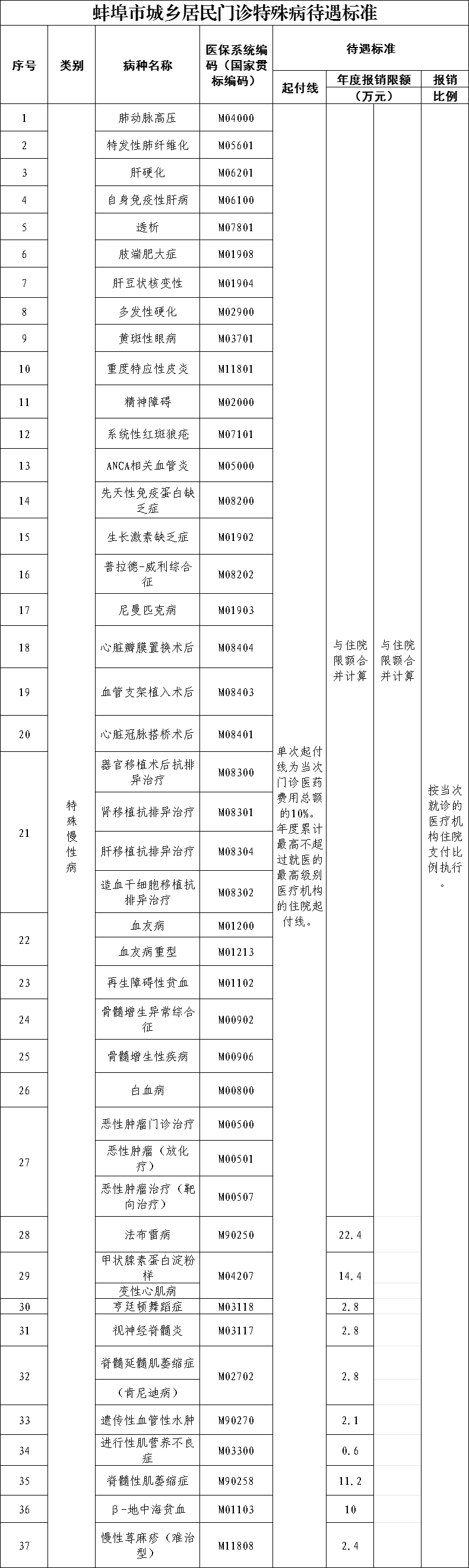 居民医保特殊慢性病患者在我市一级及以上定点医疗机构(含社区卫生服务中心、乡镇卫生院)就诊时,单次起付线为当次门诊医药费用总额的10%,一个年度内在一家定点医疗机构就医的,年度累计最高不超过该定点医疗机构的住院起付线。一个年度内在多家医疗机构就医的,年度累计最高不超过就医的最高级别医疗机构的住院起付线;支付比例按当次就诊的医疗机构住院支付比例执行。