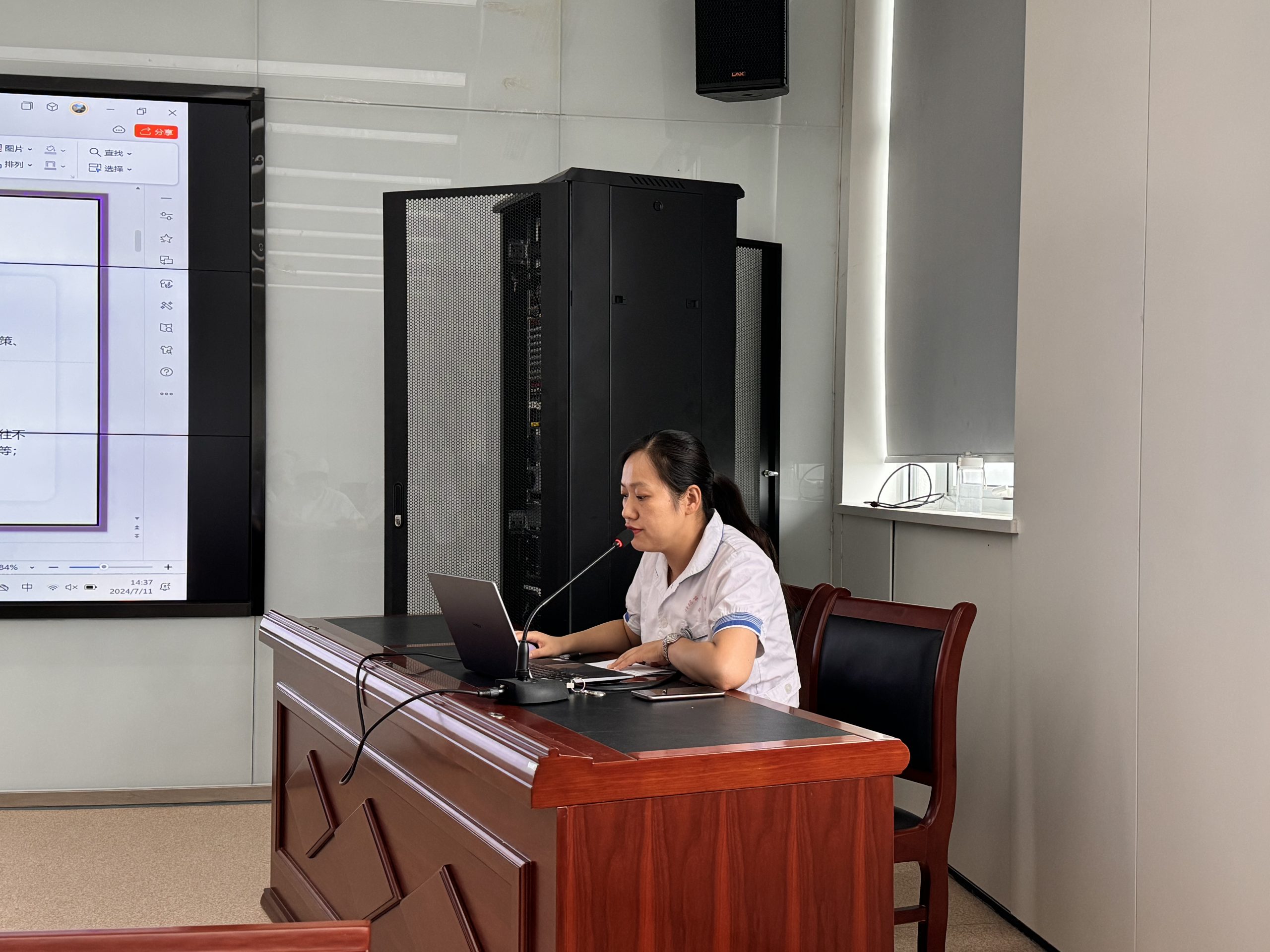 在培训过程中,徐香详尽地介绍了常见的护理医保违规行为,并深入剖析了护理医保违规的成因。她通过具体的案例分析,为护理人员敲响医保基金安全警钟,要求大家以医保违规问题为导向,致力于本科室护理服务质量和医保基金安全。