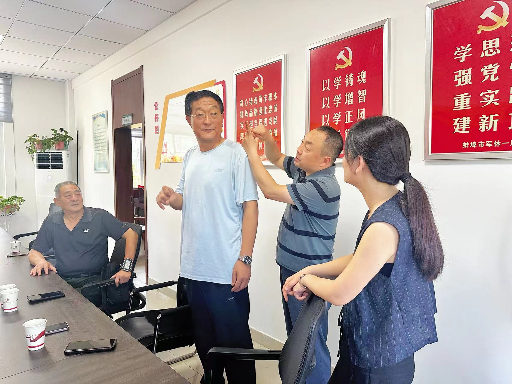 为庆祝“八一”建军97周年,弘扬“军爱民、民拥军”的光荣传统,积极落实双拥工作要求,7月28日,蚌埠市第四人民医院(市康复医院)副院长魏继虎带队,中医科党支部书记、主任汪升均,行政党支部书记袁媛前往双拥共建单位蚌埠市军休一所,开展了以“送清凉、送健康”为主题的慰问座谈活动。