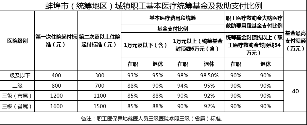 职工医保参保人员在定点医疗机构住院发生的医疗费用,符合医保政策范围内医疗费用具体报销比例如下: