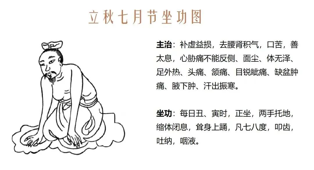 收式:上身归正盘坐,双手扶膝,脊柱直立,自然呼吸。