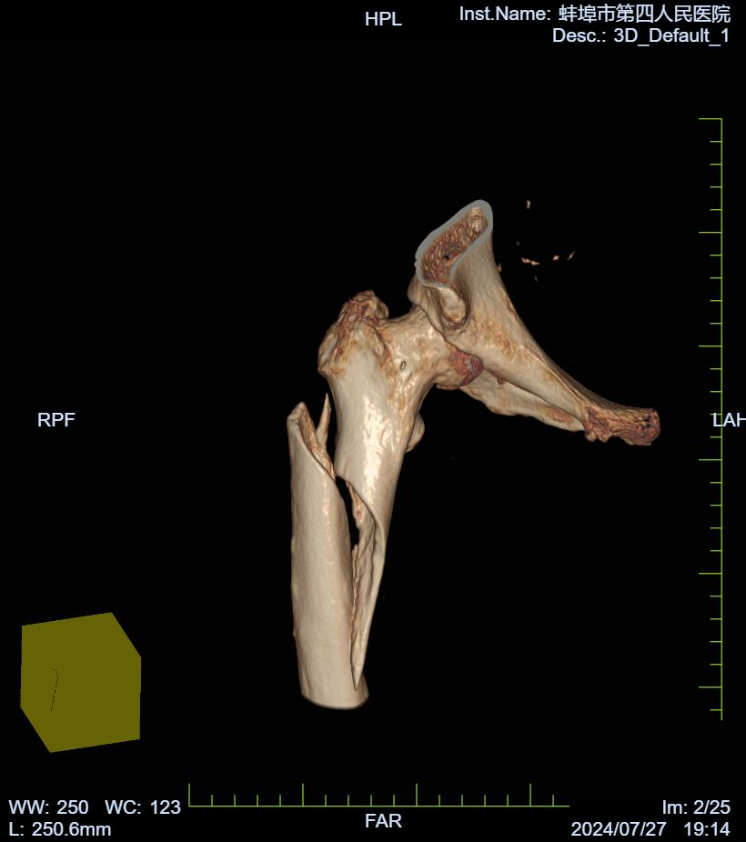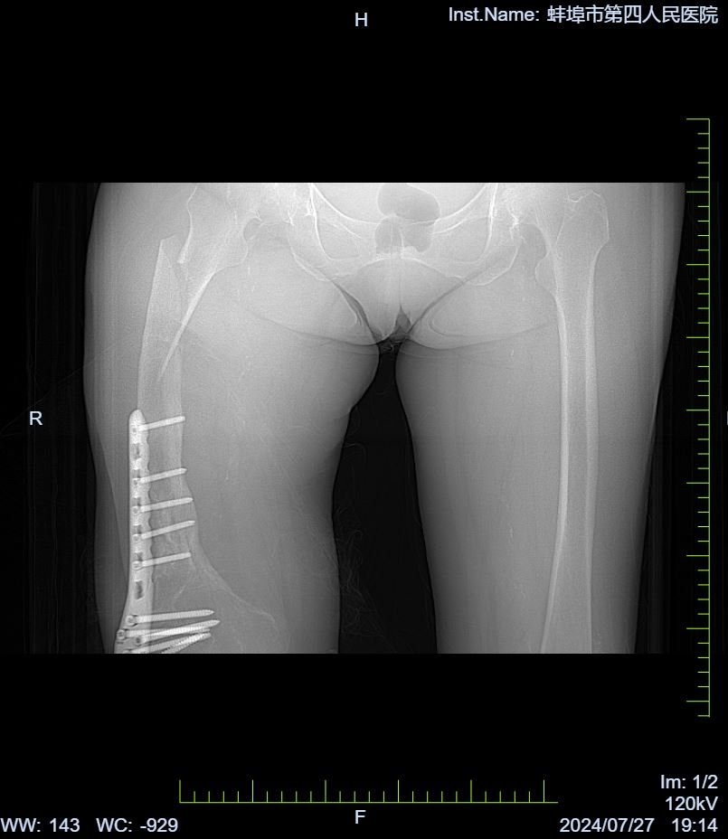 患者范奶奶今年70多岁了,因在家中不慎摔倒导致右侧大腿严重受伤,出现剧烈疼痛和外观畸形,活动受到限制,幸无皮肤破损及出血现象。伤后,范奶奶未出现头晕、头痛、心慌或气促等并发症,鉴于疼痛难忍,为求进一步治疗,她来到蚌埠市第四人民医院(市康复医院)骨科寻求帮助,经过门诊拍片后确诊为“右侧股骨干骨折”,随即安排入院治疗。