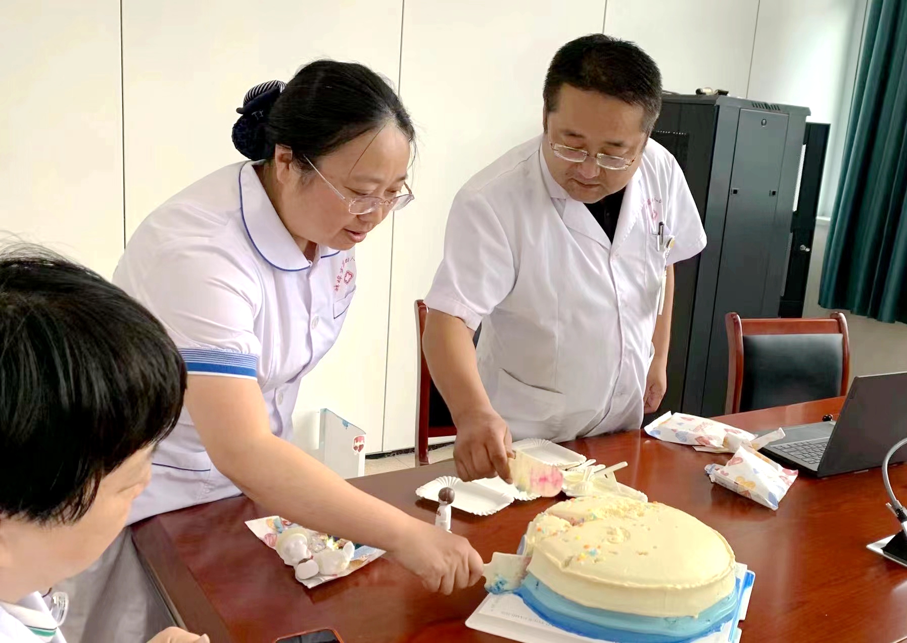 会议最后,由医教科朱科长及护理部冯主任共同主持切蛋糕环节,与参会人员一同分享蛋糕,并祝贺全体医师节日快乐。