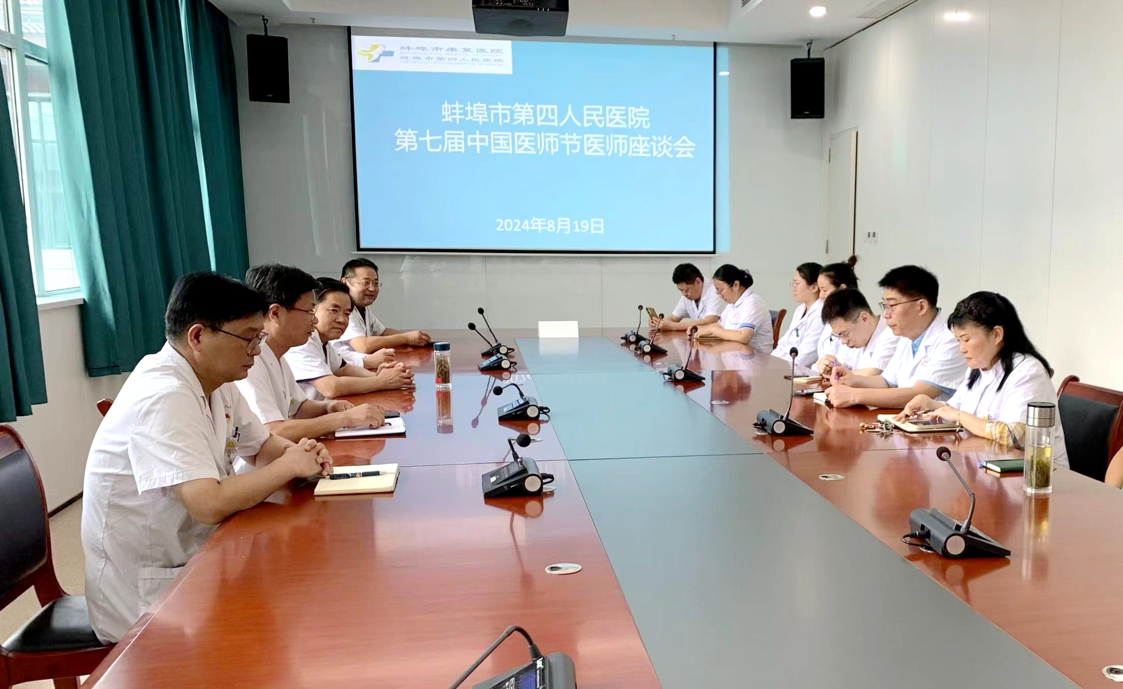 为深入学习贯彻党的二十大和二十届三中全会精神,弘扬医师队伍的爱岗敬业品质,激励全体医务工作者积极进取,增强团队凝聚力,在第七个中国医师节来临之际,8月19日,蚌埠市第四人民医院(市康复医院)在新院区行政会议室召开了2024年中国医师节座谈会。此次座谈会由院党总支副书记、院长施彪主持,院领导班子成员、临床及医技辅助科室主任与医生代表共同参与。