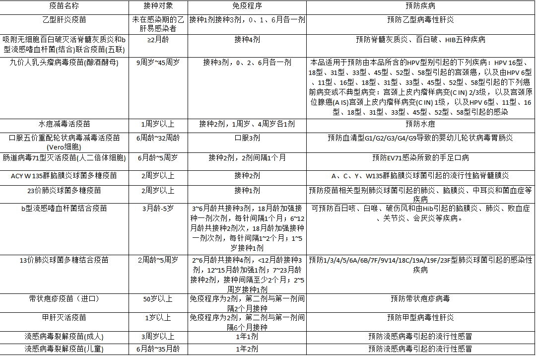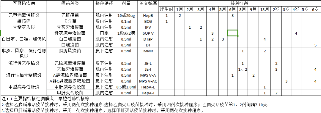 建议根据下表,看一下您家孩子是否有漏种、迟种的疫苗。
