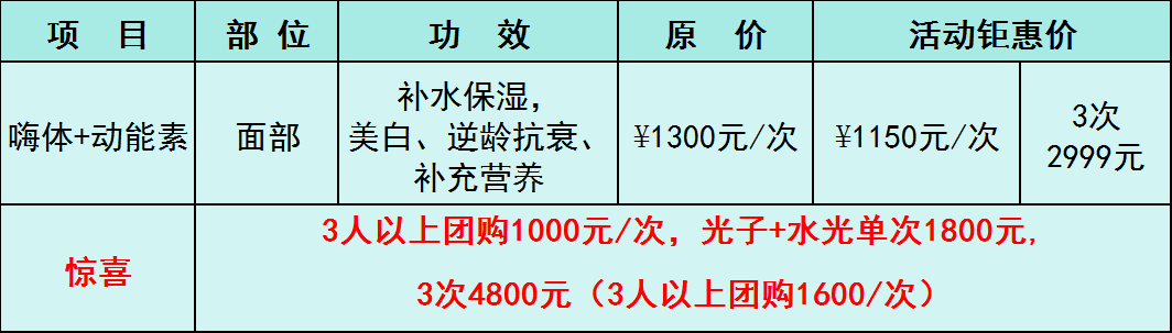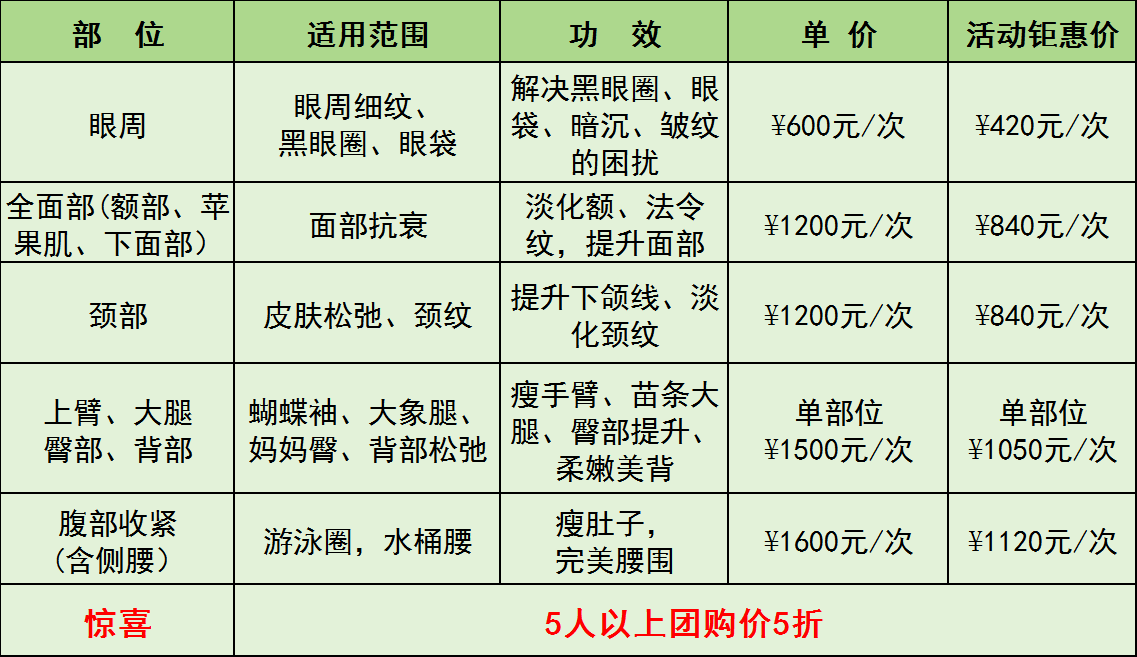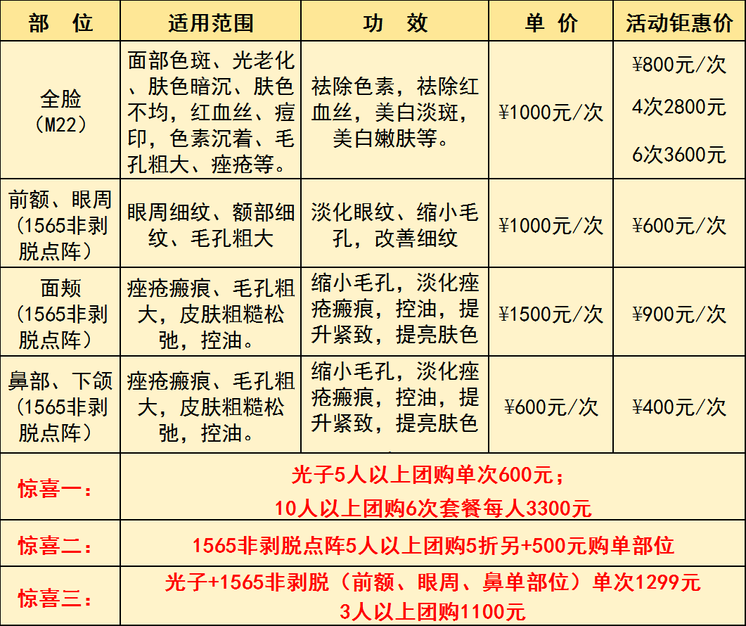 注:凡活动期间购买以上优惠活动项目后,一律不予退费。使用后剩余部分活动期内可转其它项目,活动期结束后按照原价转换其他项目。请大家理性消费,谨慎选择。