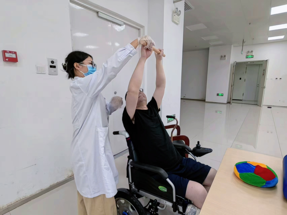 73岁的王爷爷因车祸导致“颈髓损伤伴四肢瘫痪”,刚入院时,王爷爷双下肢功能丧失、四肢肌肉萎缩、颈部以下感觉消失、大小便失禁,一度自暴自弃对生活完全失去信心。经过3个月的精心治疗和悉心护理,王爷爷的四肢感觉从无到有,肌力逐渐增加,从只能平躺到能端坐、足趾、手指可轻微活动,双肩等身体部位的疼痛也逐渐解除,肢体运动能力和感觉功能一点点回来了。“一开始治疗时,听到专业术语,听不懂,心里有些紧张还有些烦闷,但段天葳老师非常耐心地为我解释治疗原理,告诉我怎么康复训练。”王爷爷说,自己非常信任康复治疗师,也能感觉到身体一天天在发生变化。