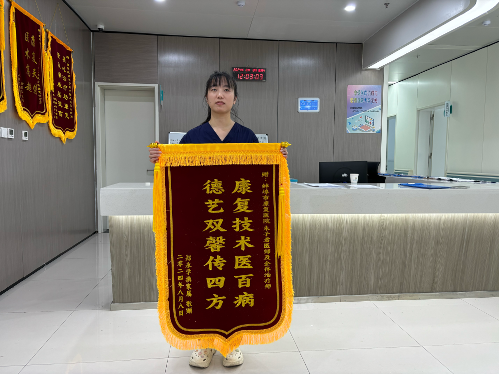8月份以来,蚌埠市第四人民医院(市康复医院)康复治疗部接连收到患者送来的锦旗达四面。红彤彤的锦旗是患者对康复治疗团队的信任与感激,是治疗团队对患者关怀与付出的回报,是无数个以心换心的真挚体现,更是对医院康复专业服务的最高赞誉。