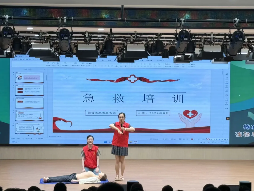 随着开学日期的临近,为进一步增强在校师生安全意识,增强自救互救知识,掌握急救技能,树立“人人学急救,急救为人人”的理念,提升急救知识的普及率,8月27日下午,蚌埠第四人民医院(市康复医医院)徐香志愿者服务站走进蚌埠市秀水实验学校,开展“从我开始,‘救’在身边——急救知识进校园”的主题活动,为学校近200名师生讲解急救知识并进行现场演练。