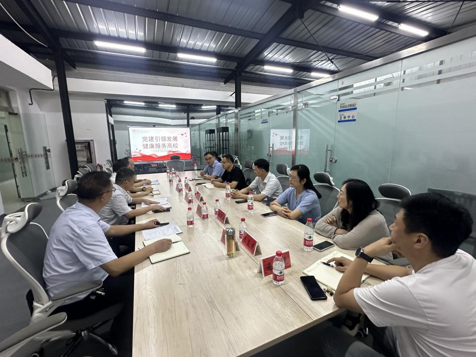 在活动现场的会议室,安徽科技学院党委委员卫胜带领工会负责人与我院党委委员王长海及健康管理中心负责人等双方10余名党务干部开展了党建交流座谈会。双方就平安医院、健康校园、教学科研、文化孕育等方面进行了深入交流,后期也将以个别支部为切入点继续拓展合作领域,实现队伍共建、服务联动。