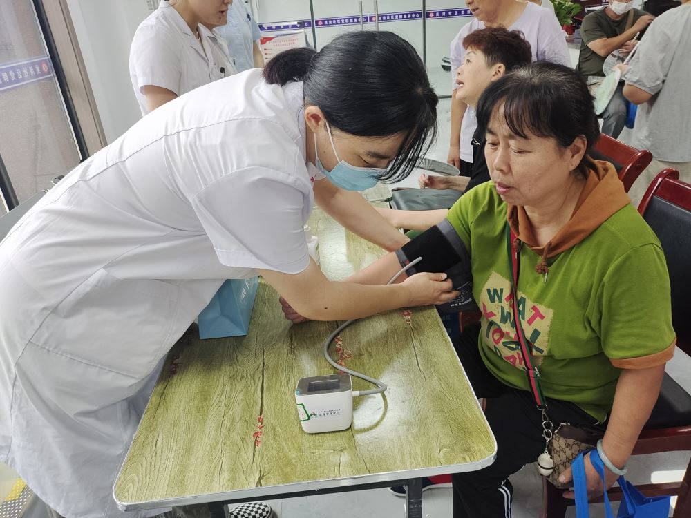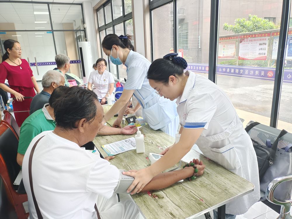 与此同时,我院的党员志愿者们也为社区居民提供血糖、血压监测服务,并发放预防老年疾病相关的宣传资料。