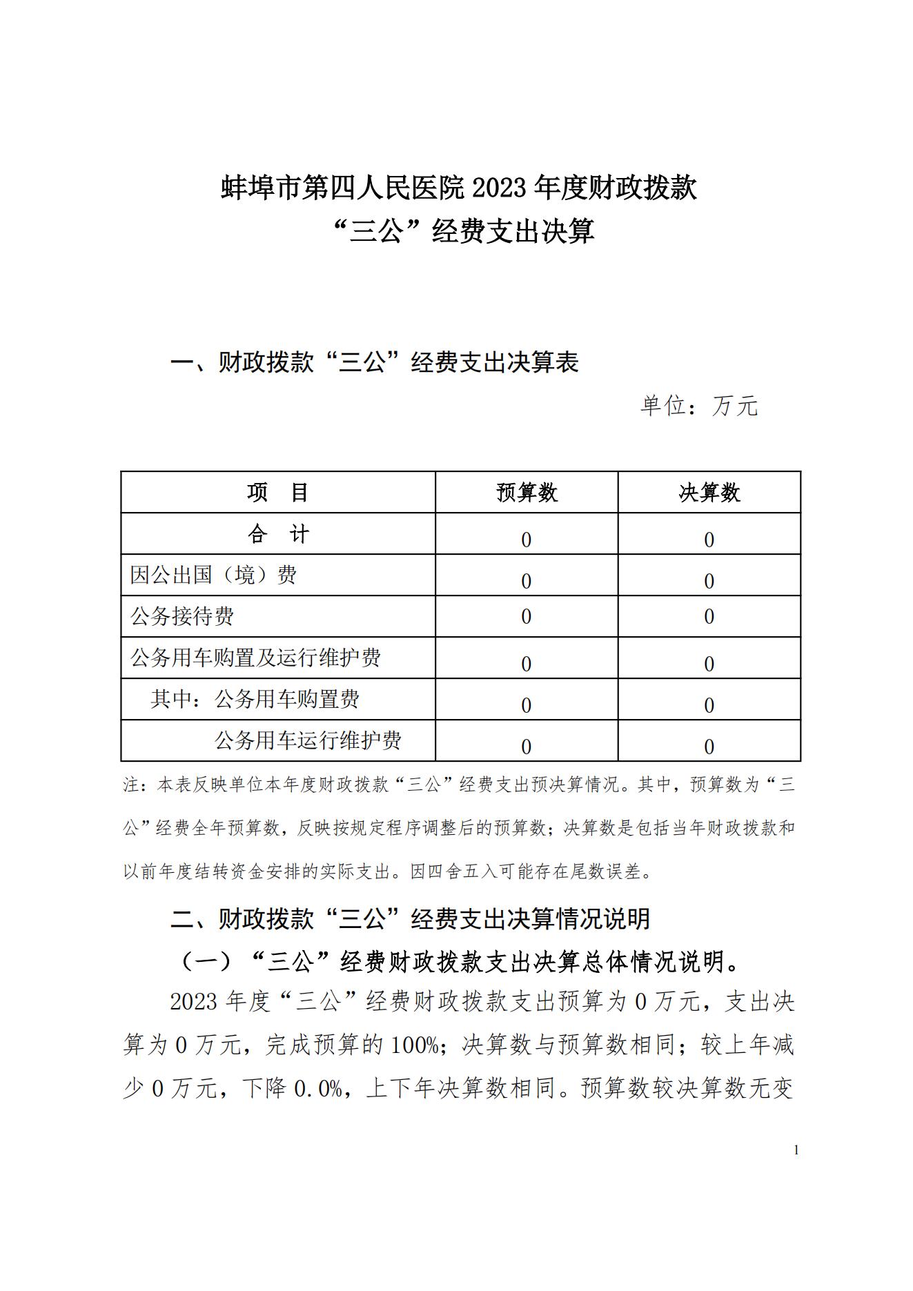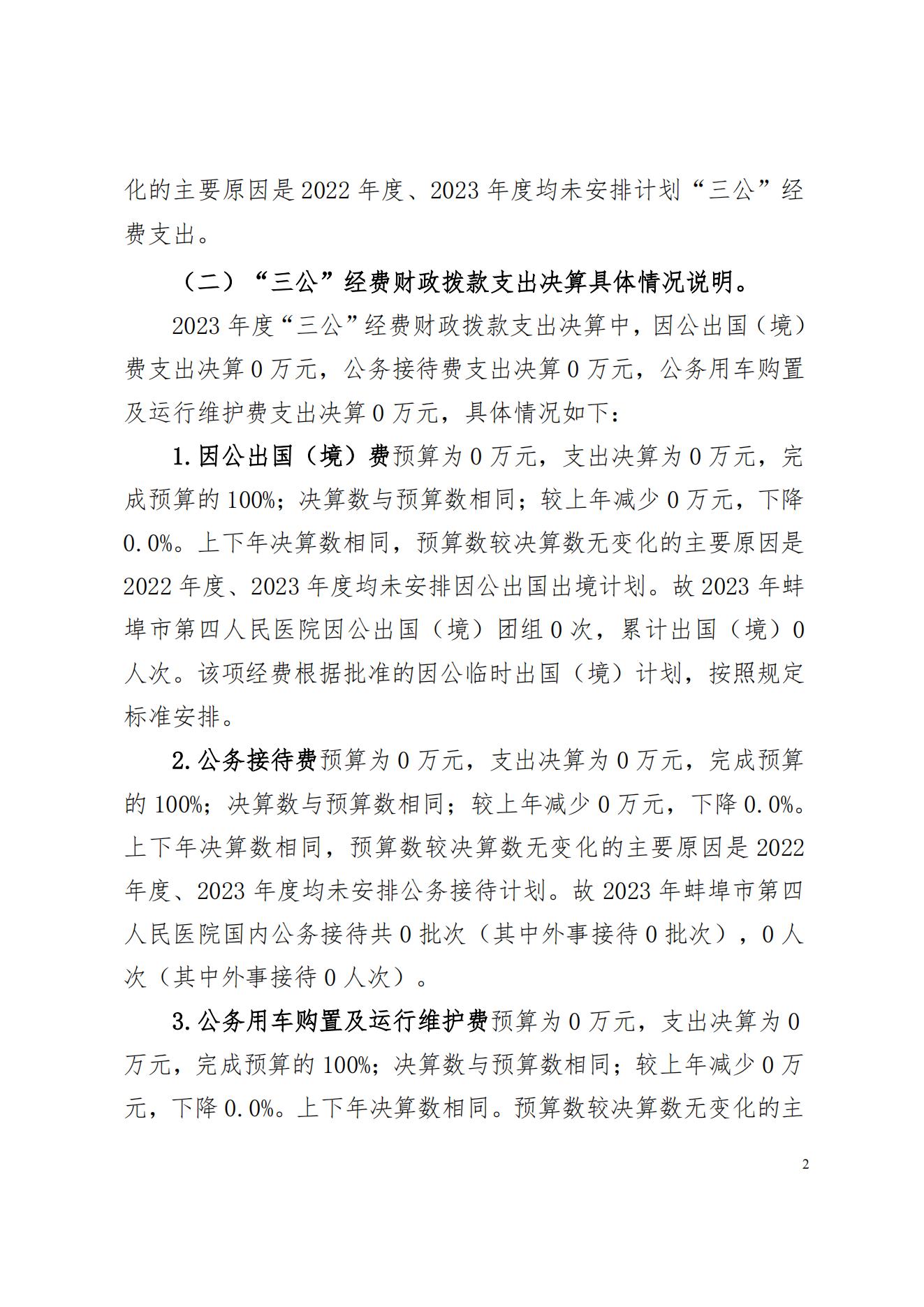 蚌埠市第四人民医院 2023 年度财政拨款 “三公”经费支出决算