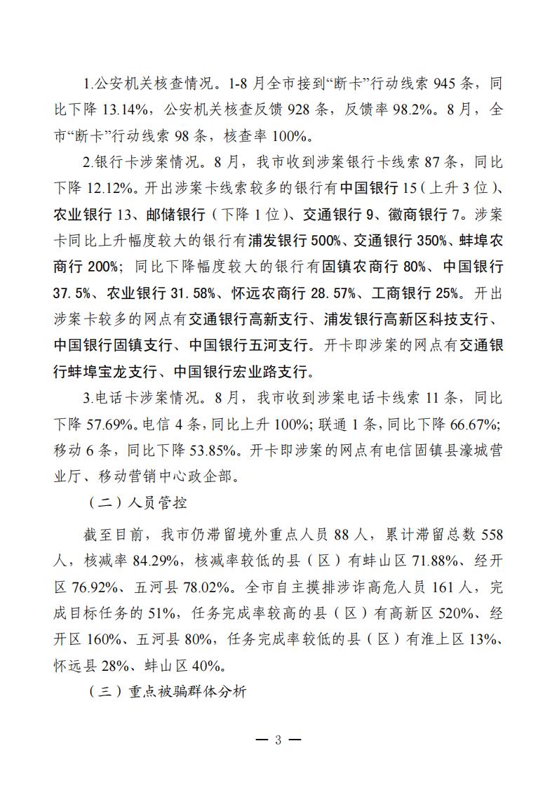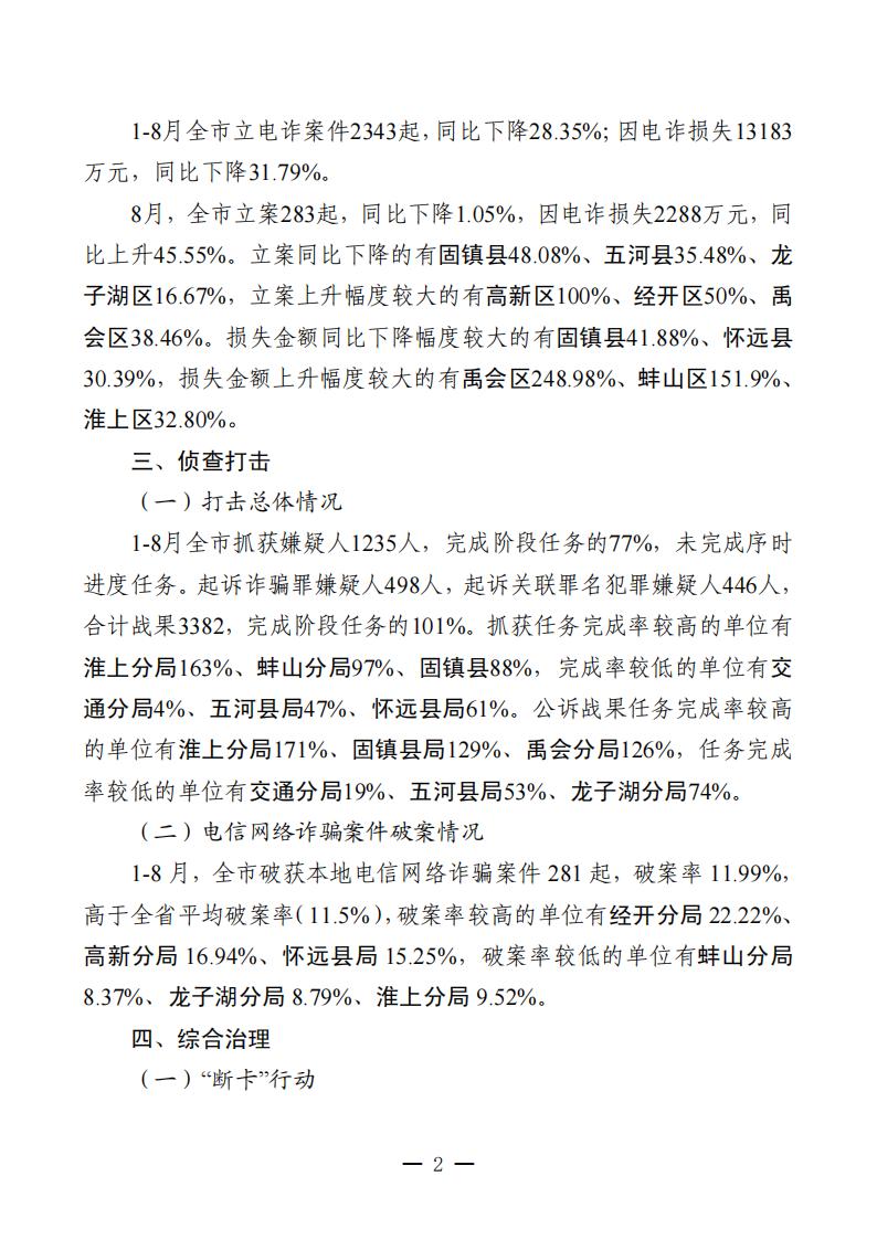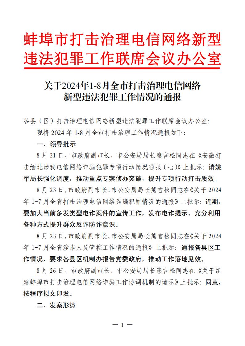 关于2024年1-8月全市打击治理电信网络新型违法犯罪工作情况的通报