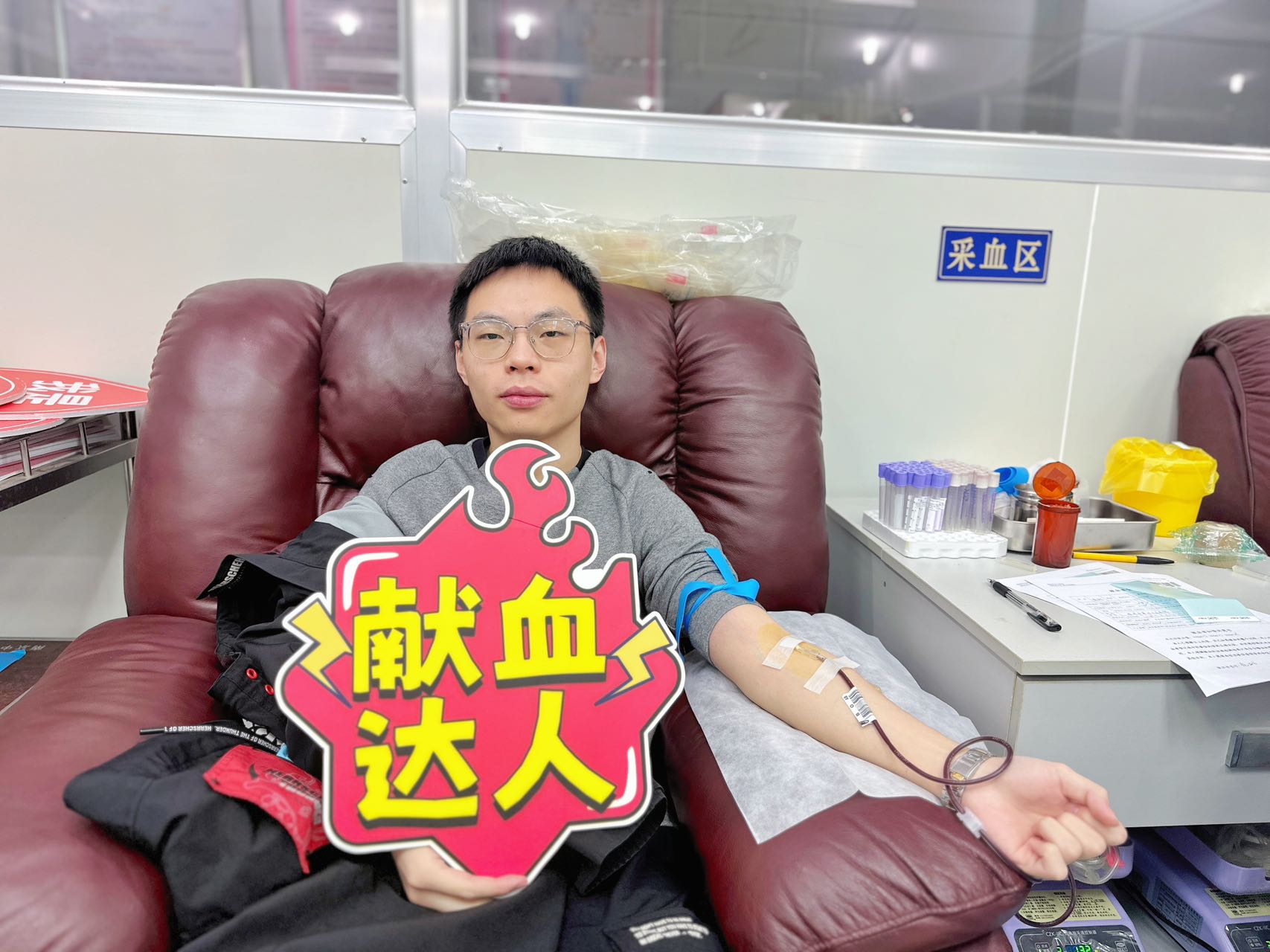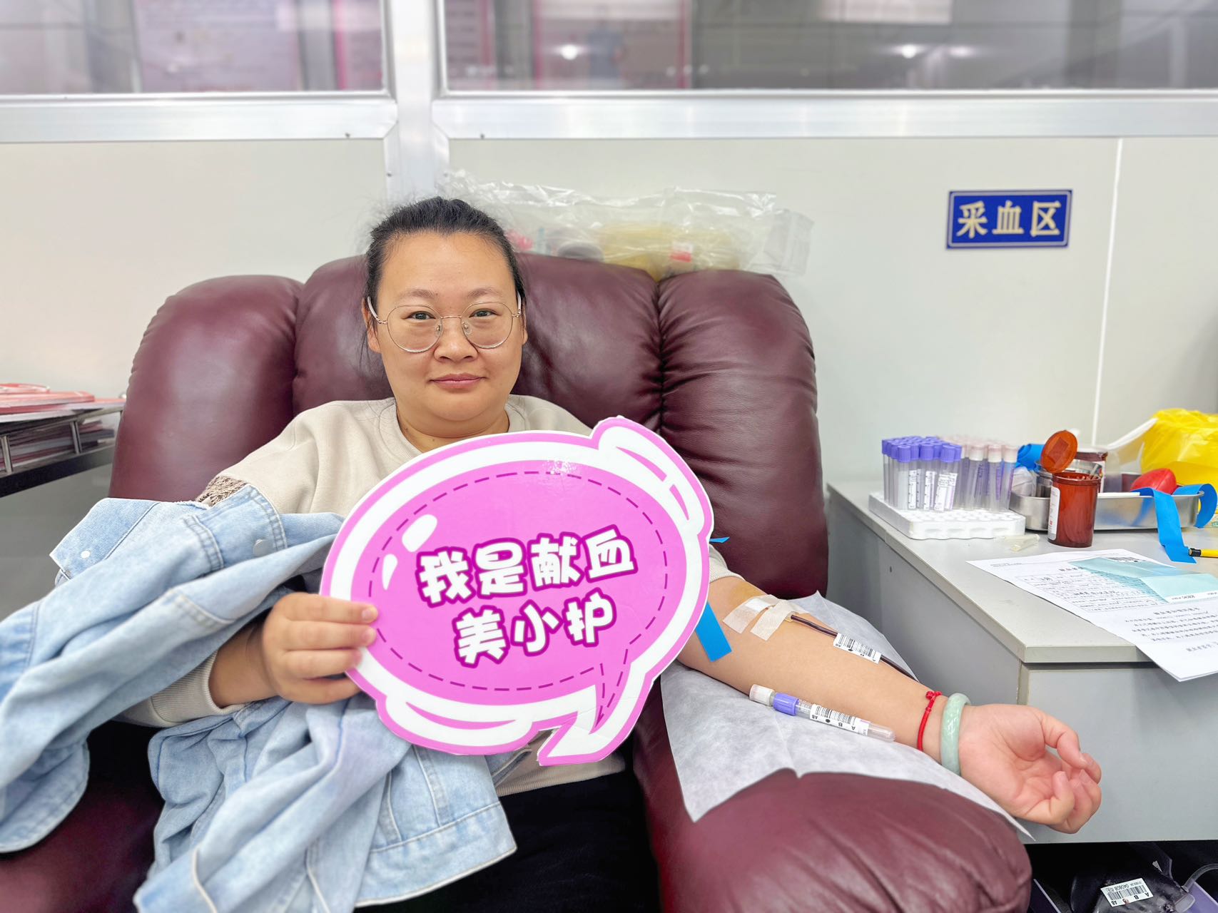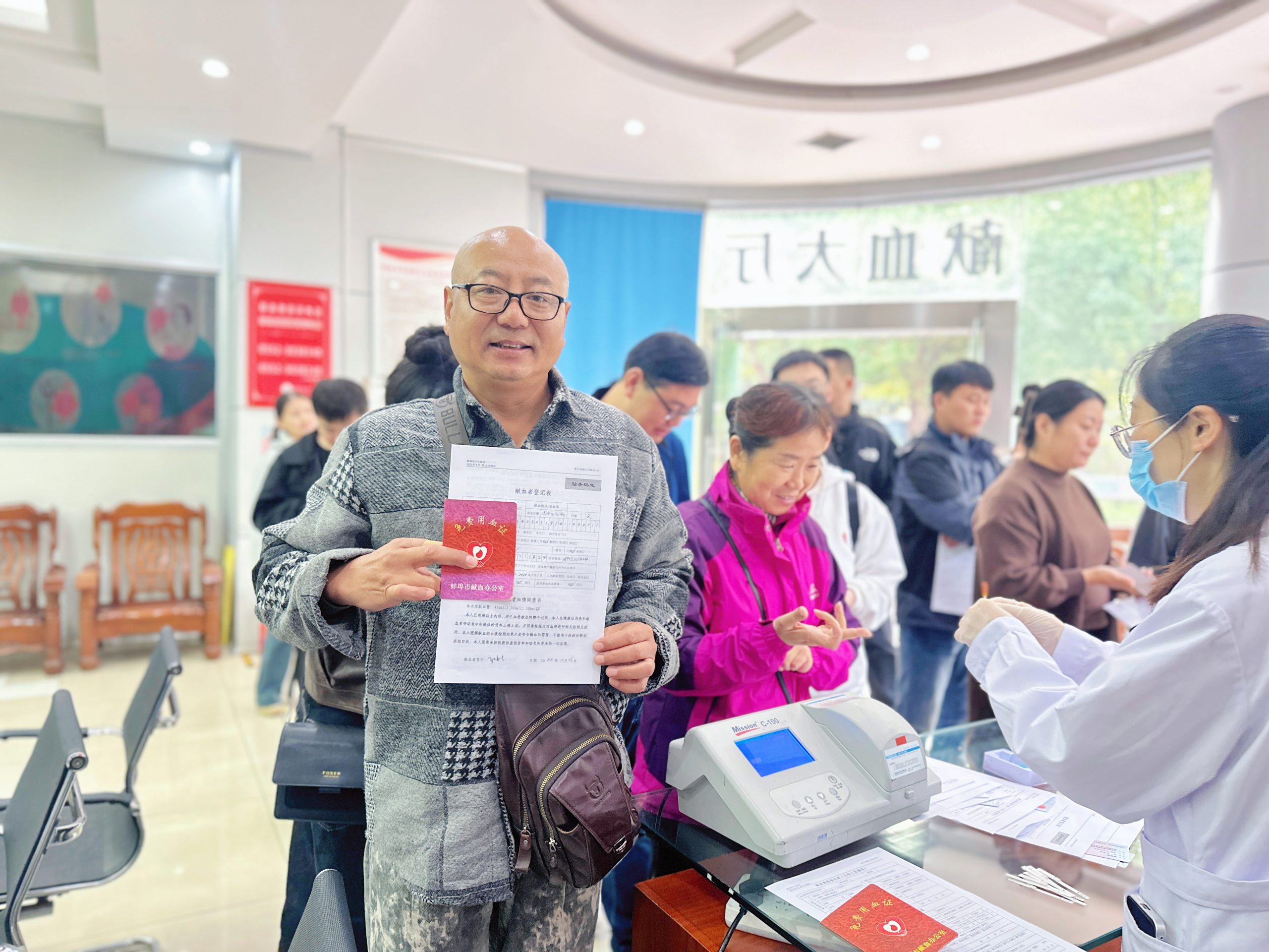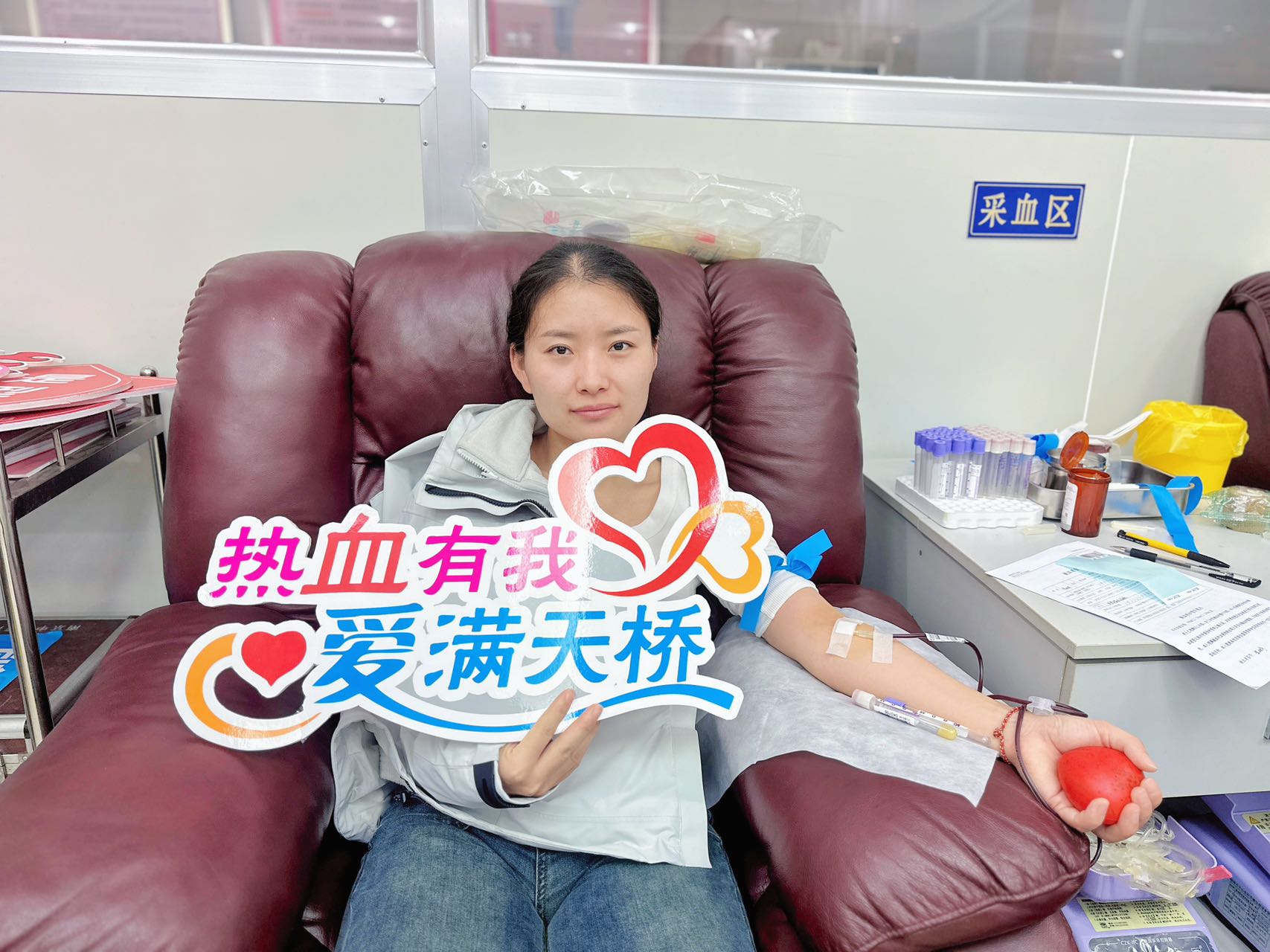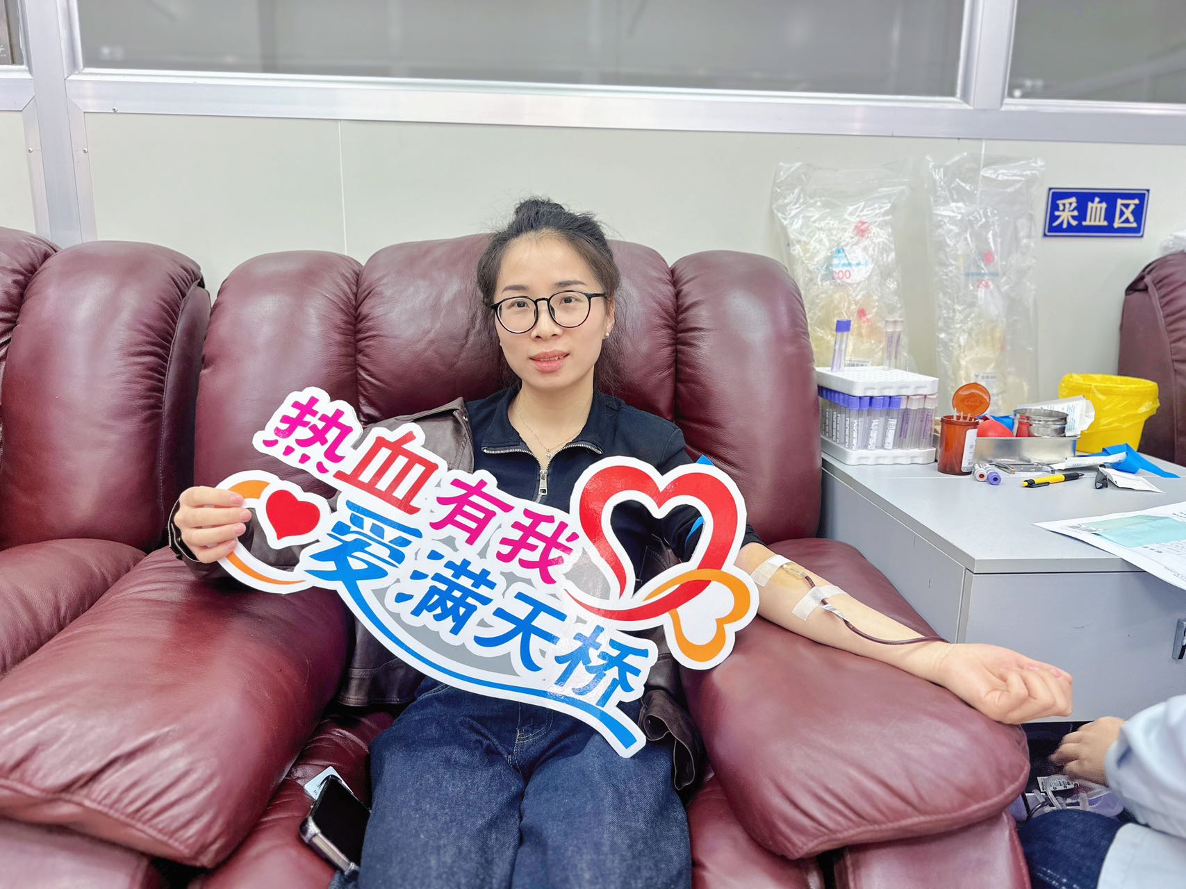 献血现场秩序井然,气氛热烈而温馨。我院职工们面带微笑,在血站工作人员的指导下有序进行填表、审核、血样检测等献血前准备工作。